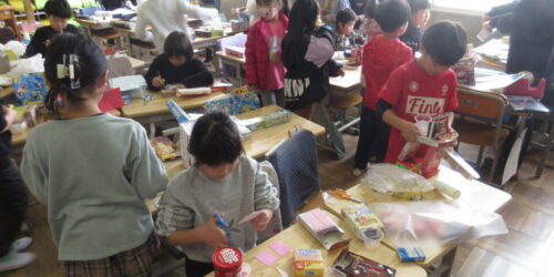 2026年1月26日 授業の様子 1月26日 1年生は、算数の学習で使った箱を使って、いろいろなものを作っていました。「きょうりゅうをつくったよ」と見せてくれました。... カテゴリー 日々の活動の様子