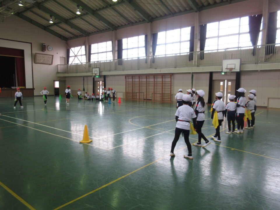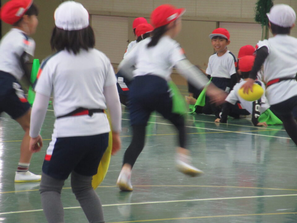 2限目に体育館で3年生が「タグラグビー」をしていました。本格的にというより、そのための練習という感じでしょうか?「タグラグビー」ってあまり聞いたことがない方も多いのではないかと思います。HP等を参考にすると「だ円形のボールを持って走り、味方にボールをパスも可。キックもない。腰に付けた2本のタグをお互いに取ったり取られたりしながら、相手ゴールを目指す」ということです。ゲームとなると楽しみも倍増するかなと思って見ていました。