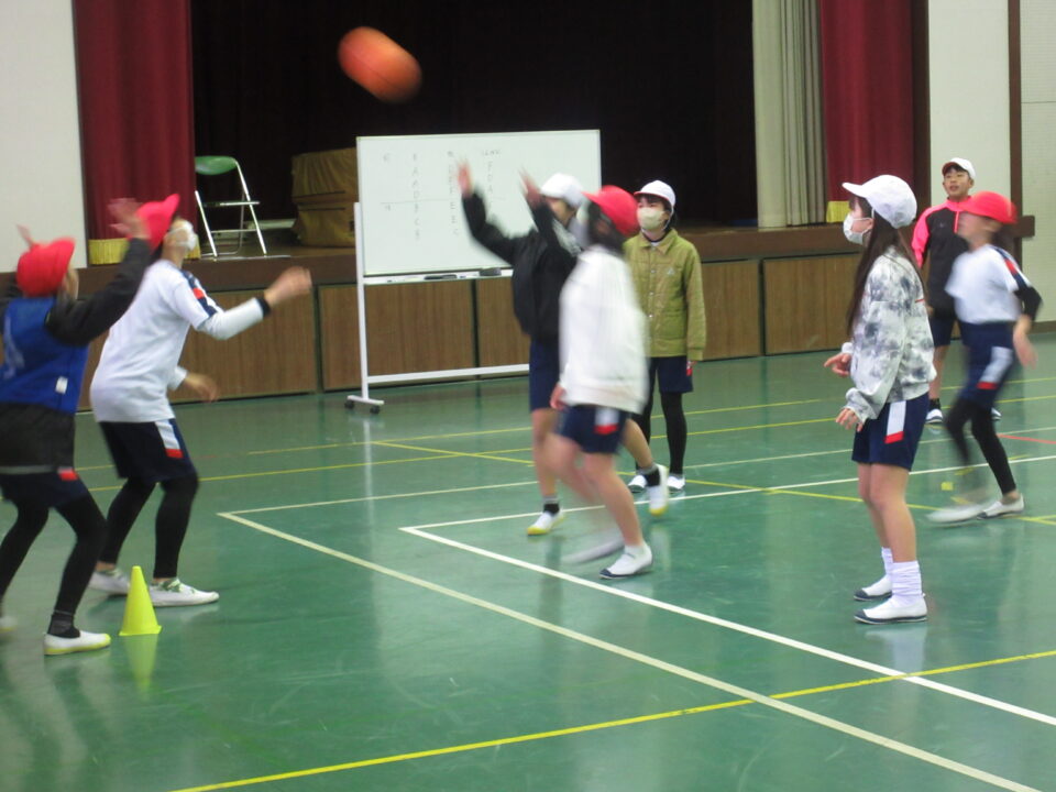 今日は朝から雨が降っており、どうも一日雨のようです。そんな中、体育館では5年生が学年でポートボールをしていました。ちょうど、試合形式で行っているところでした。審判や得点も係を決めて、自分たちで進めていました。動きがあると、なかなか白熱してきますね。