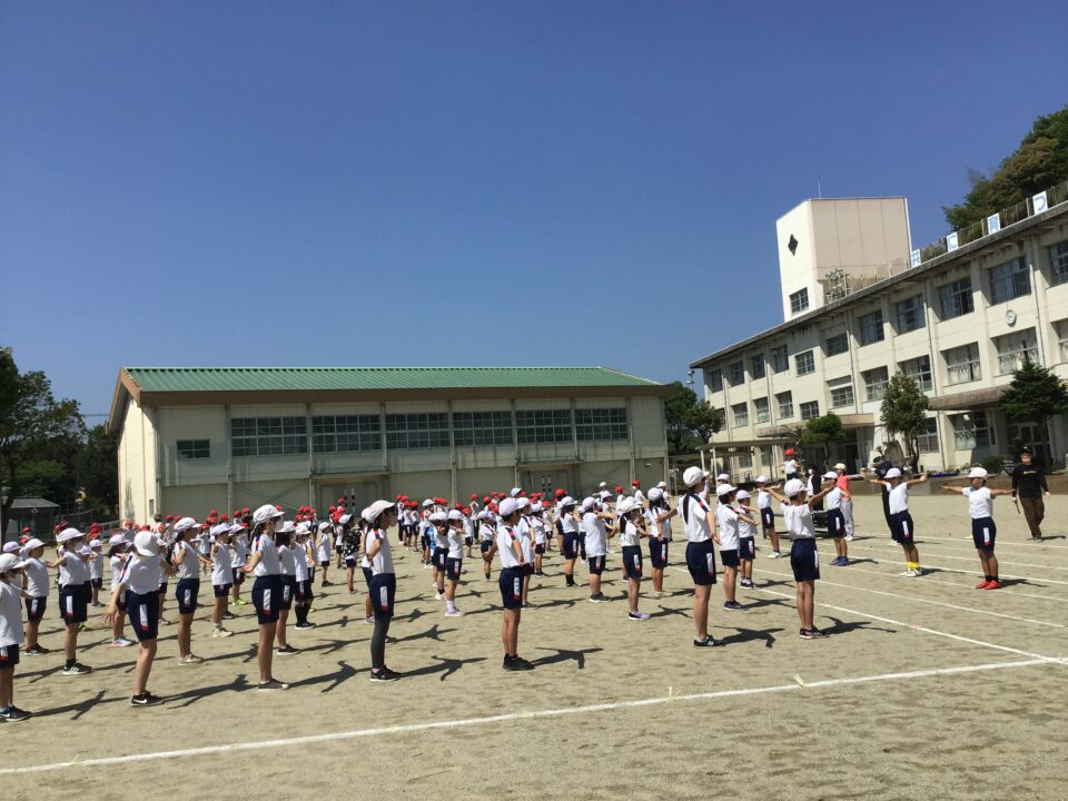 とても良い天気になりました。暑いぐらいです。今日ははじめて運動会の全校練習をしました。全校がそろうと、いよいよ運動会という感じが出てきますね。緊張した顔も見えます。