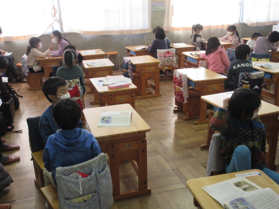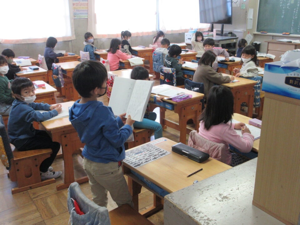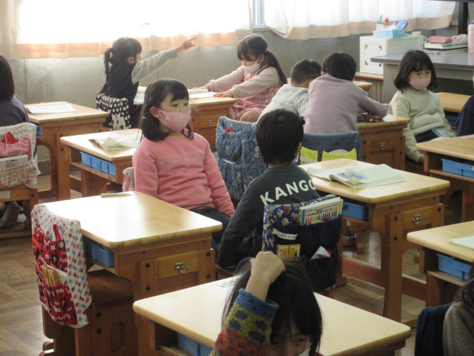 しかし、1年生は松教研の研究授業が行われたため、5限目まで授業がありました。今日は射和小の先生ではなく、松教研国語部会の先生方(市内のいろいろな小学校の先生方)に1年生の国語の授業を参観してもらいました。