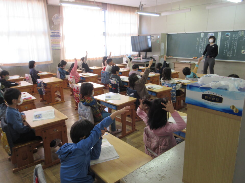 今日の課題に対して、子どもたちは、ペアになって自分で考えたことを伝えたり、全体の中で挙手をして発言したり、自分の考えをノートにまとめたりしました。深く考えた発言や、なるほどなあと共感する発言や、子どもたちならではと思う豊かな発想もありました。また、自分の考えを一生懸命伝えようとする姿もありました。子どもたち、みんなとても頑張って学んでいました。