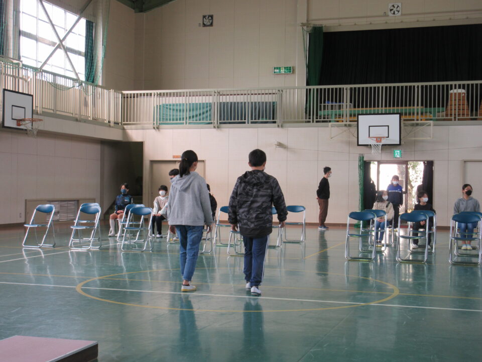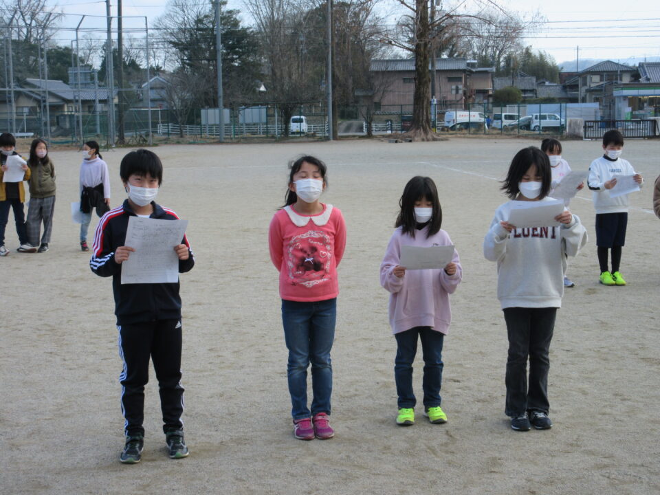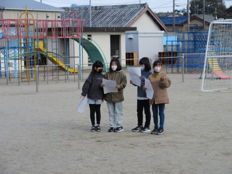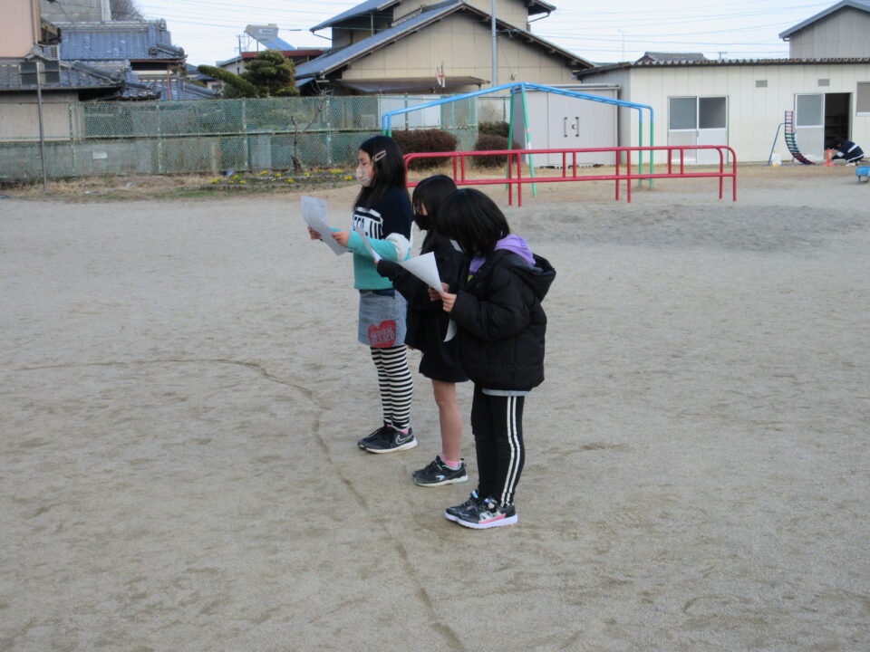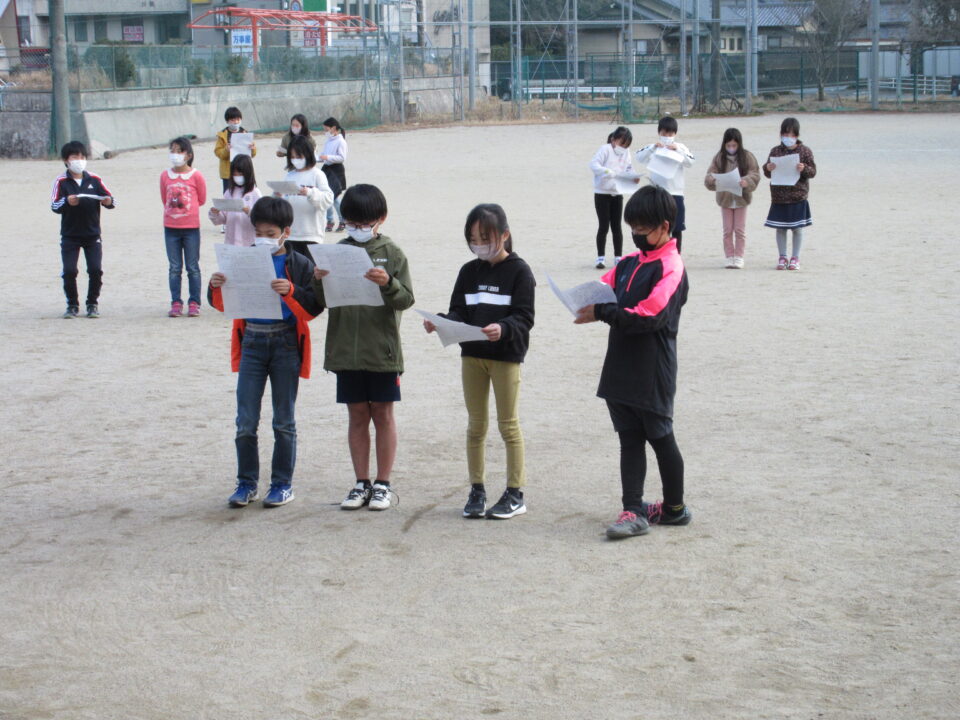 発表の練習は、コロナ対策と自信をもって堂々と発表ができるように運動場で行いました。