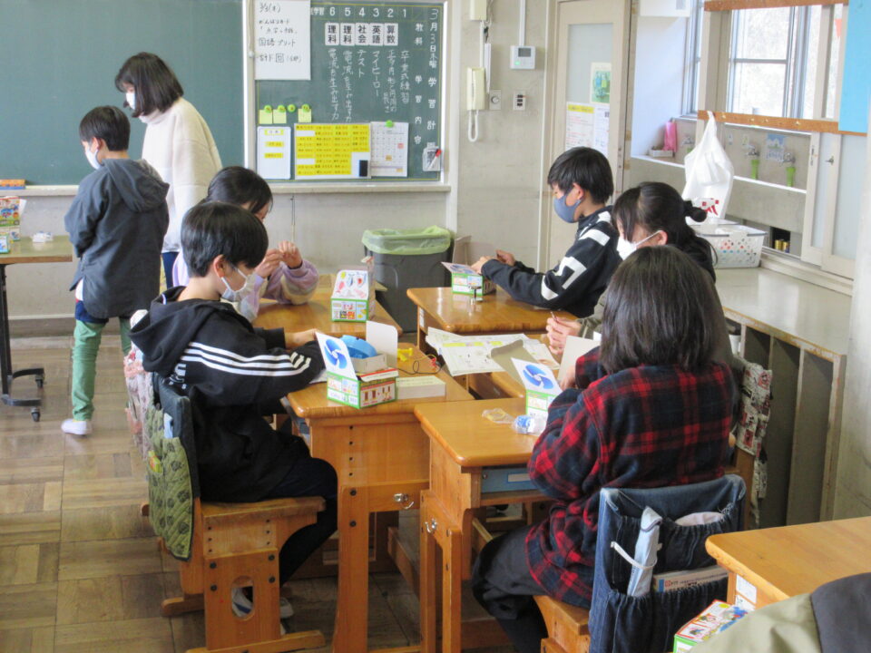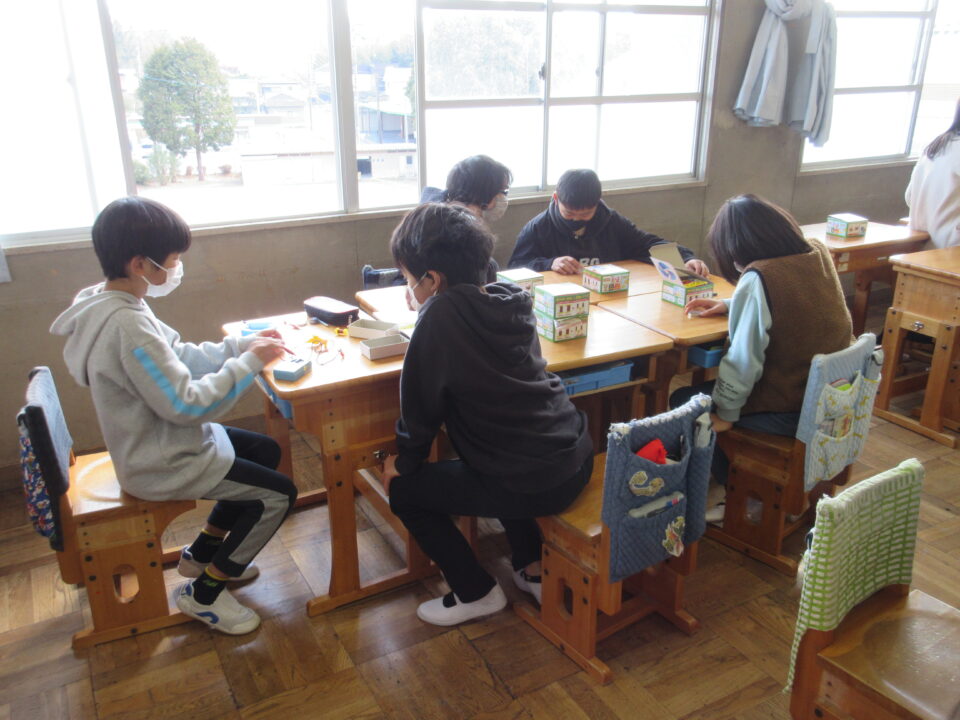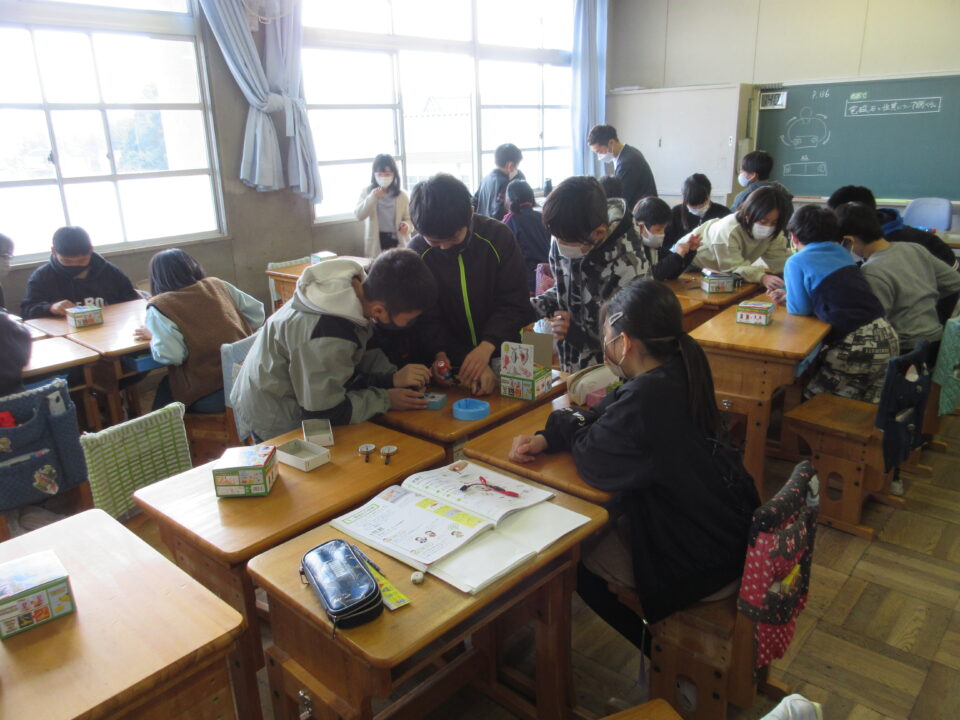 5年生は電磁石の実験です。実験キットを使っての学習です。