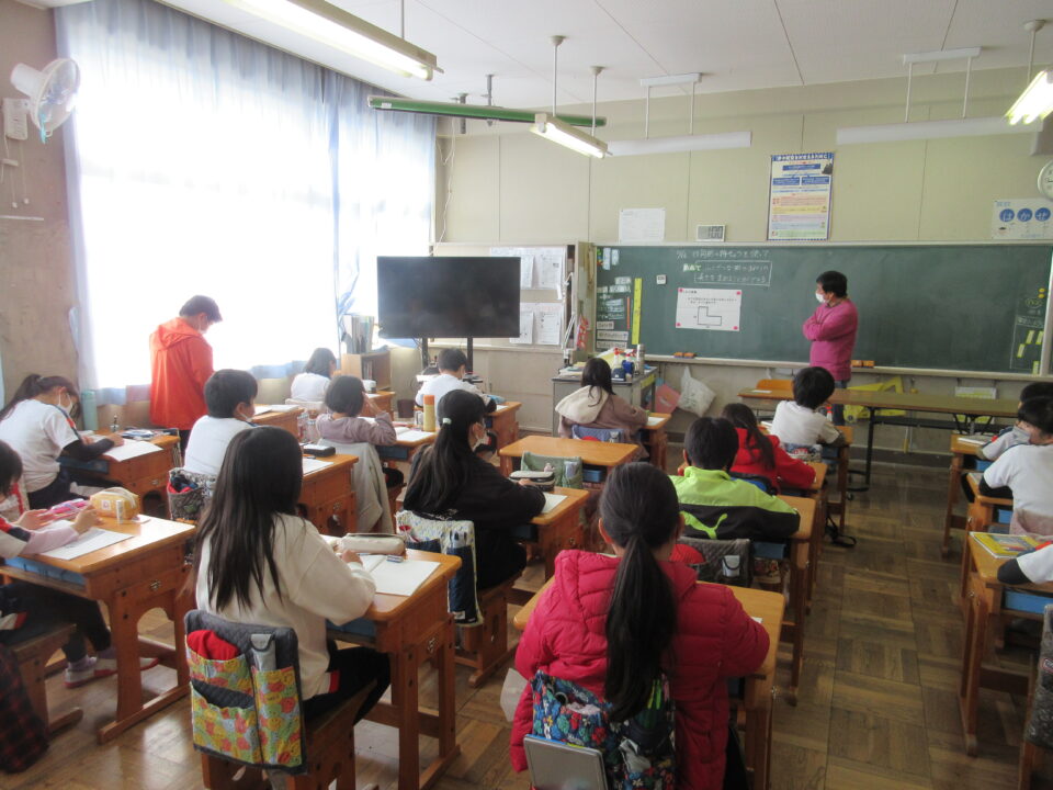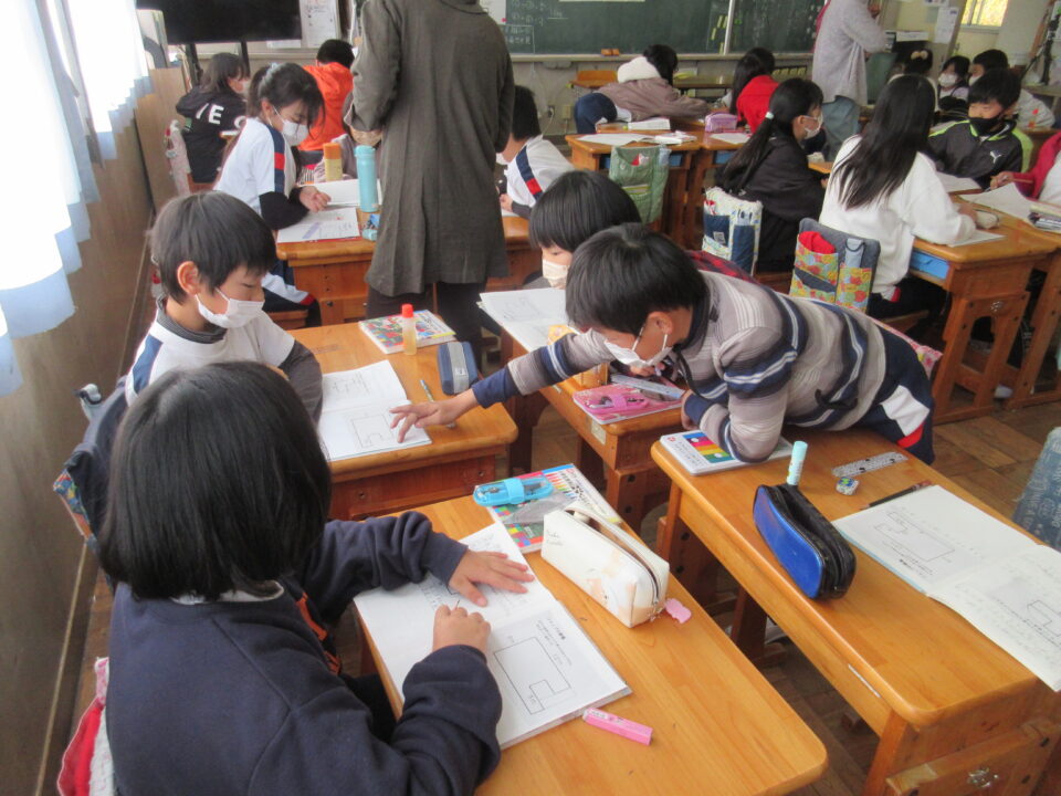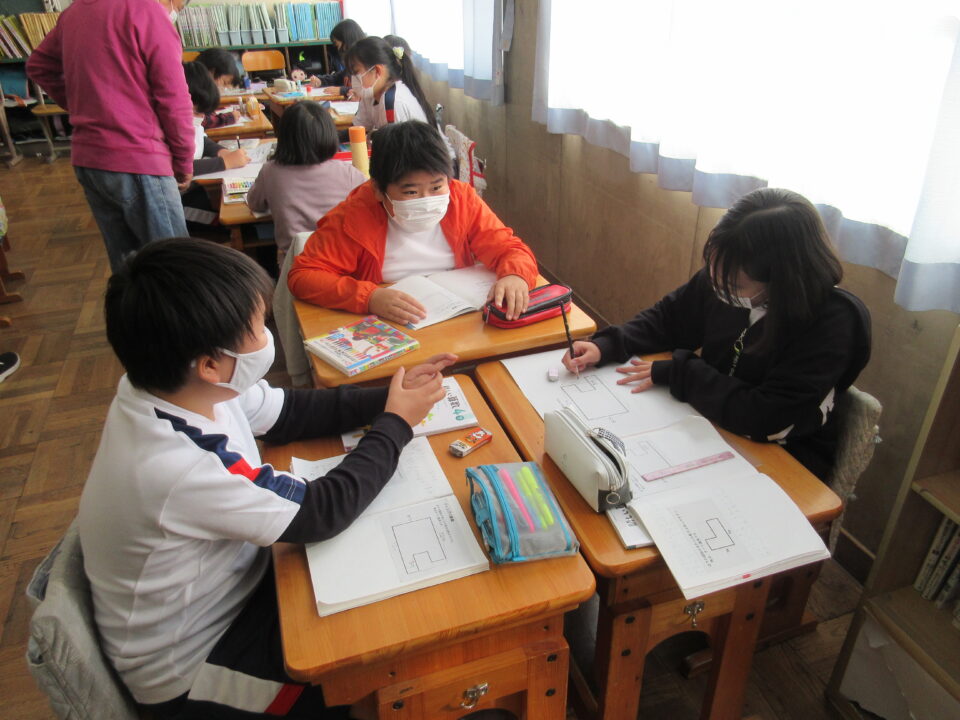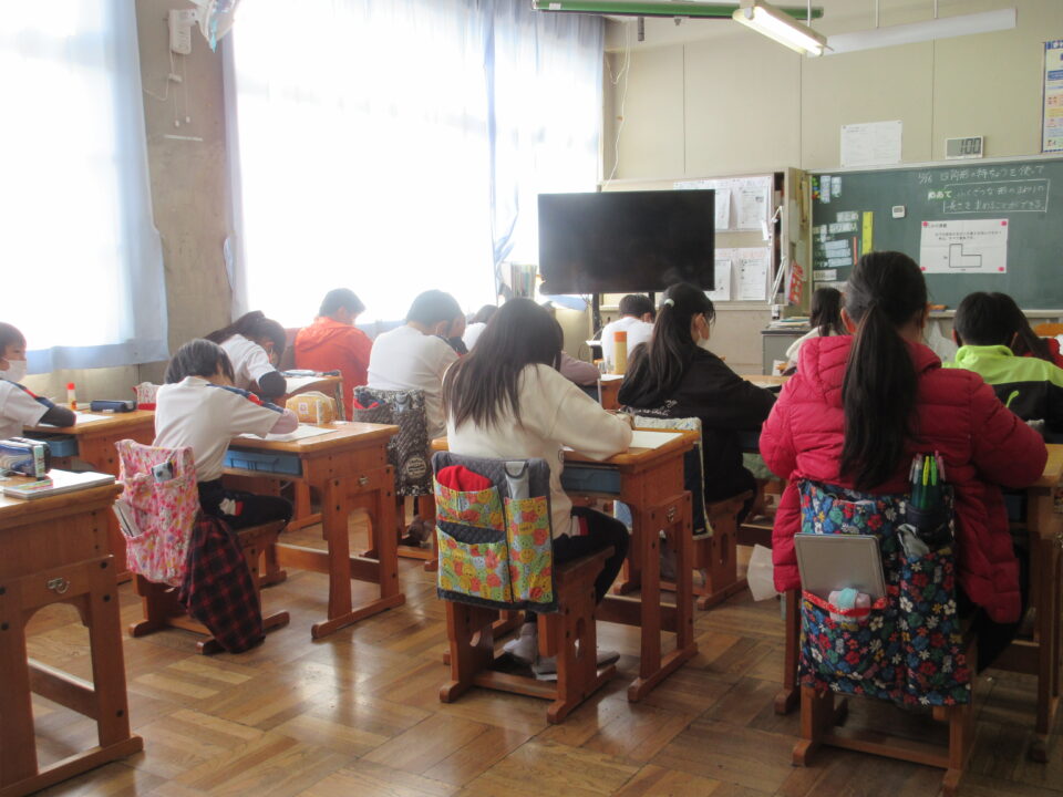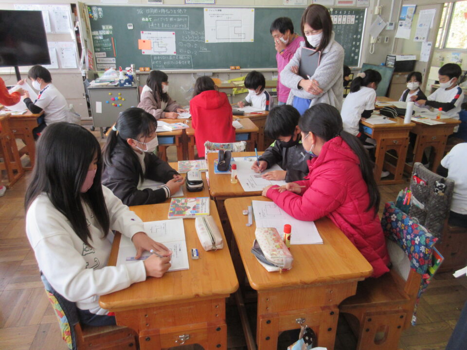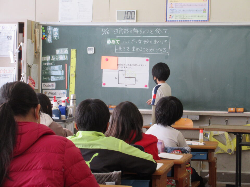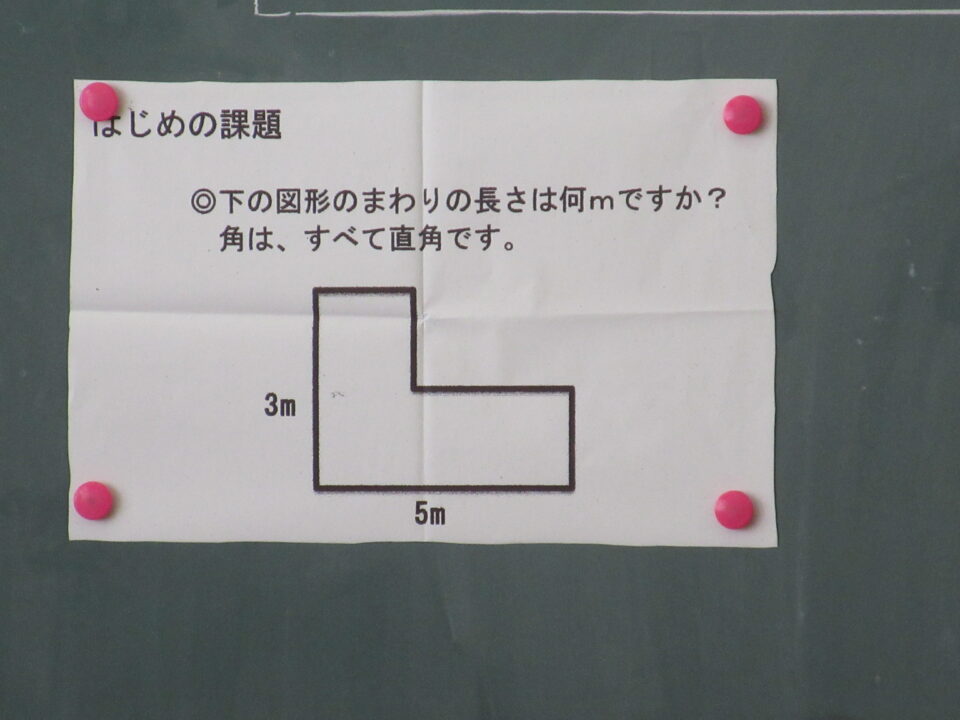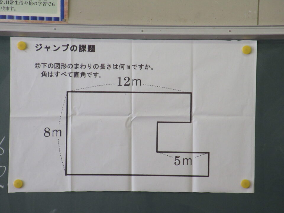 4年生の算数の授業です。図形のまわりの長さを求める授業です。