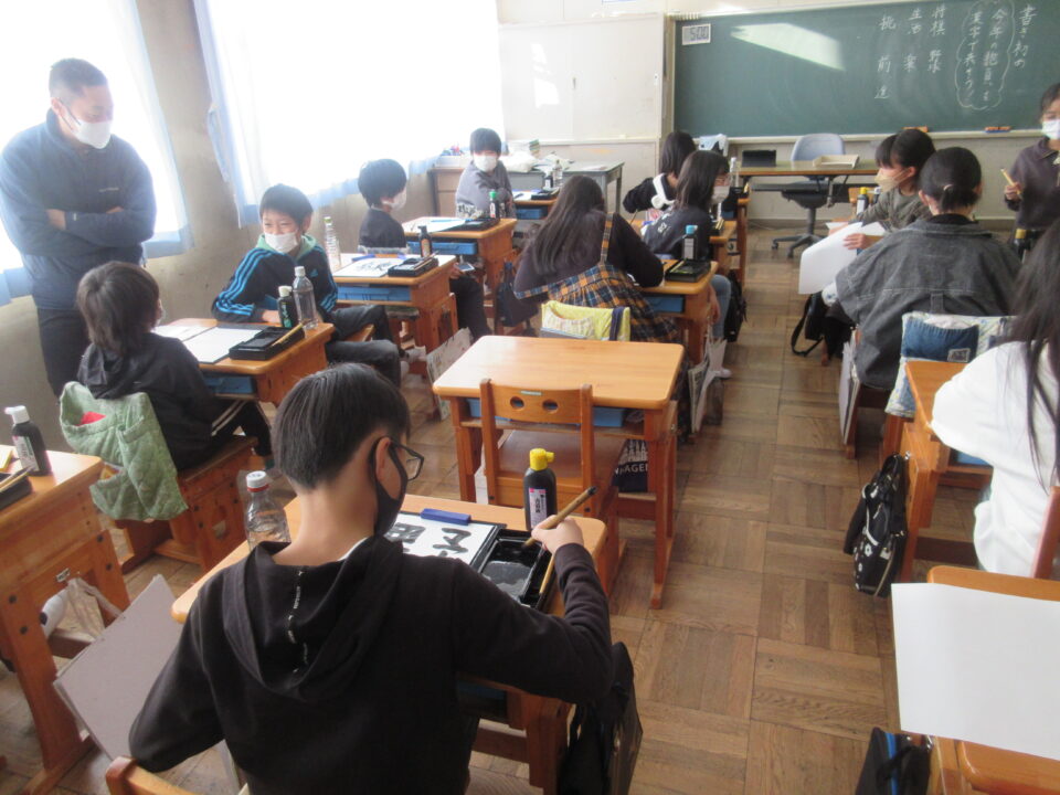5年生は習字の時間に、書き初めをしました。各自が今年の抱負、今年の目標を決めて書いていました。とても面白い試みです。