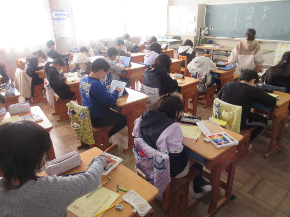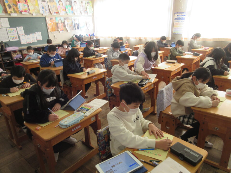 3年生は感謝集会の準備をしていました。教室は、感謝の気持ちがいっぱいの温かい雰囲気でした。
