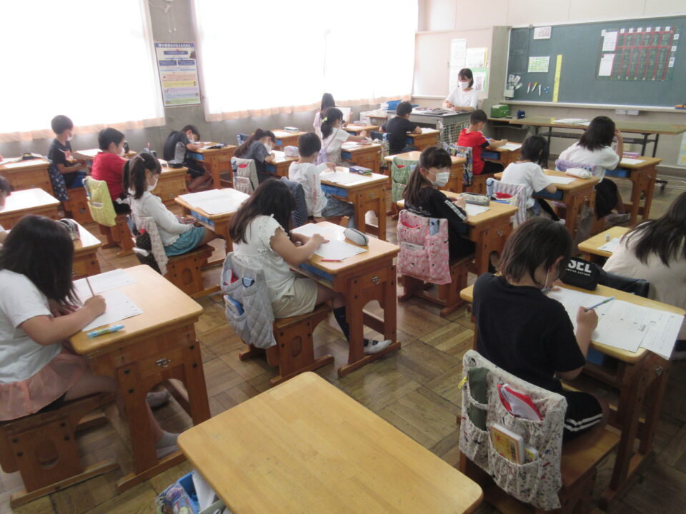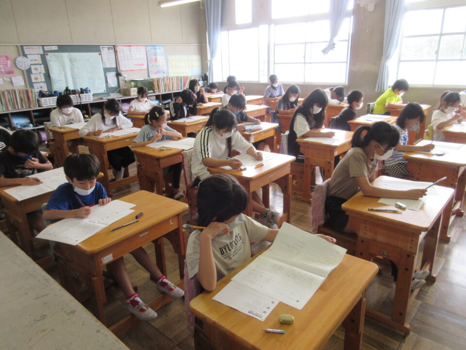 2年生から5年生の子どもたちが、松阪市標準学力調査(実力テストです。)に取り組みました。今回の調査は紙媒体での問題です。どの教室も、みんなが真剣に問題用紙と向きあっていました。