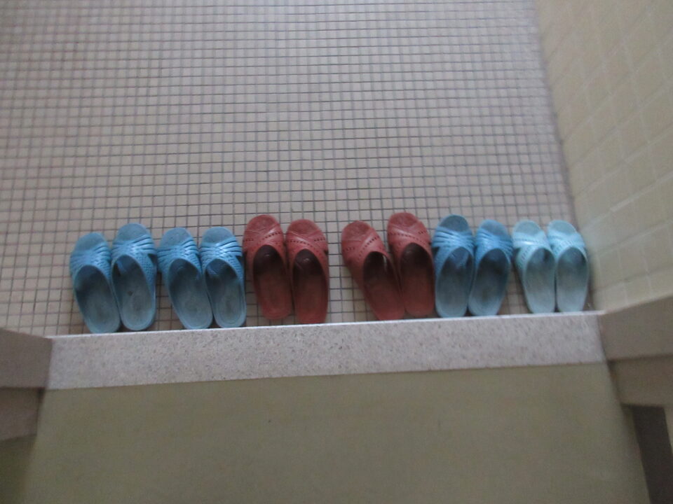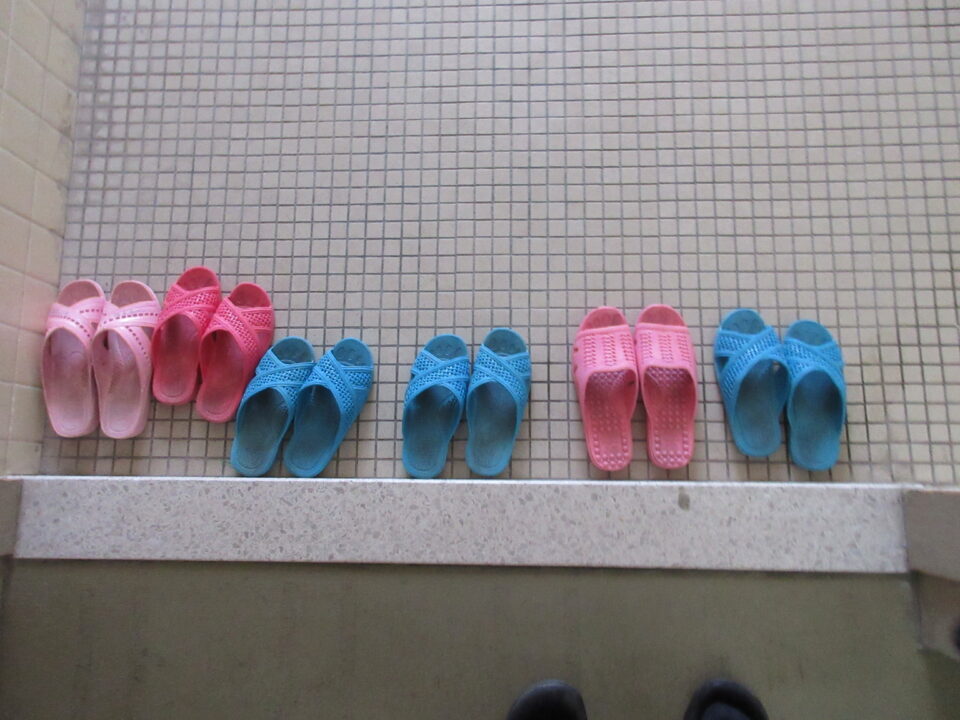 例えば、トイレのスリッパが奇麗に整頓されている場所を紹介してくれました。おかげで、今日の放課後トイレのスリッパを見に行ったら、ご覧のようにほとんどの場所が奇麗に整頓されていました。ちょとした工夫で、学校は前進していきますね。