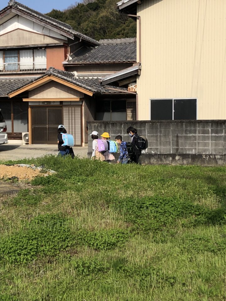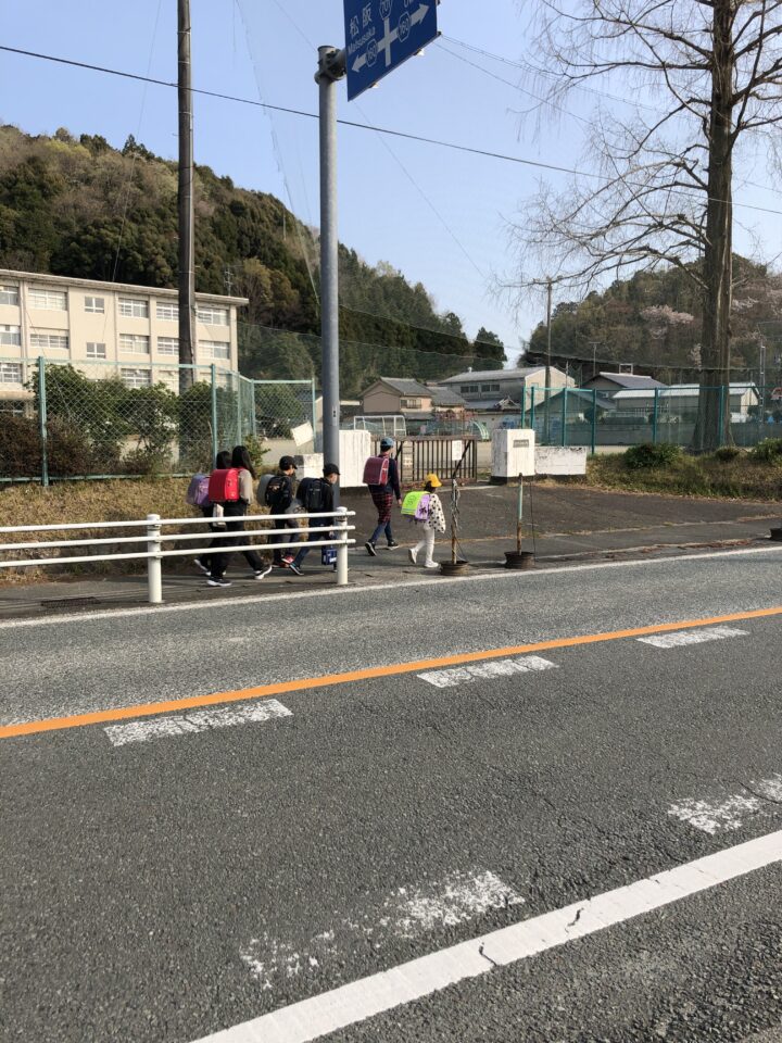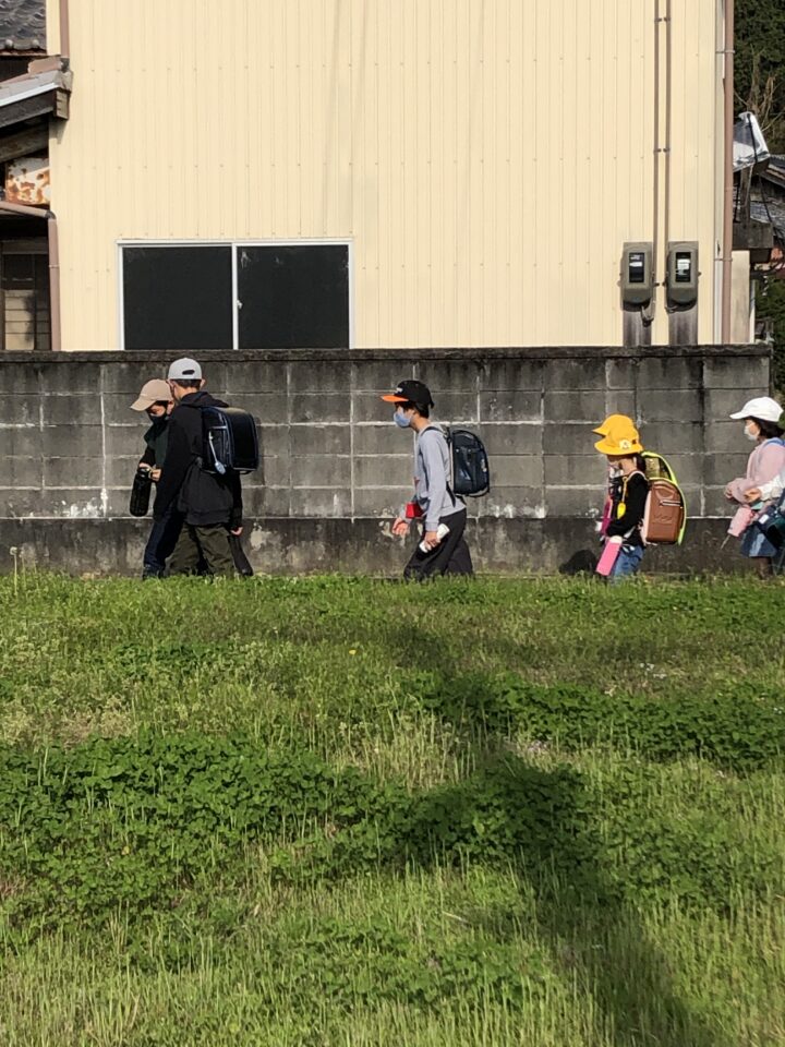 3月の終わりには、とても速いスピードで歩いていたみんなが、今日は、かたつむりのように一歩一歩ゆっくりと進んでいました。先頭になる6年生を中心に、みんなが1年生の目線になって、1年生を見守るように登校している様子を見ると、とても嬉しくなりました。