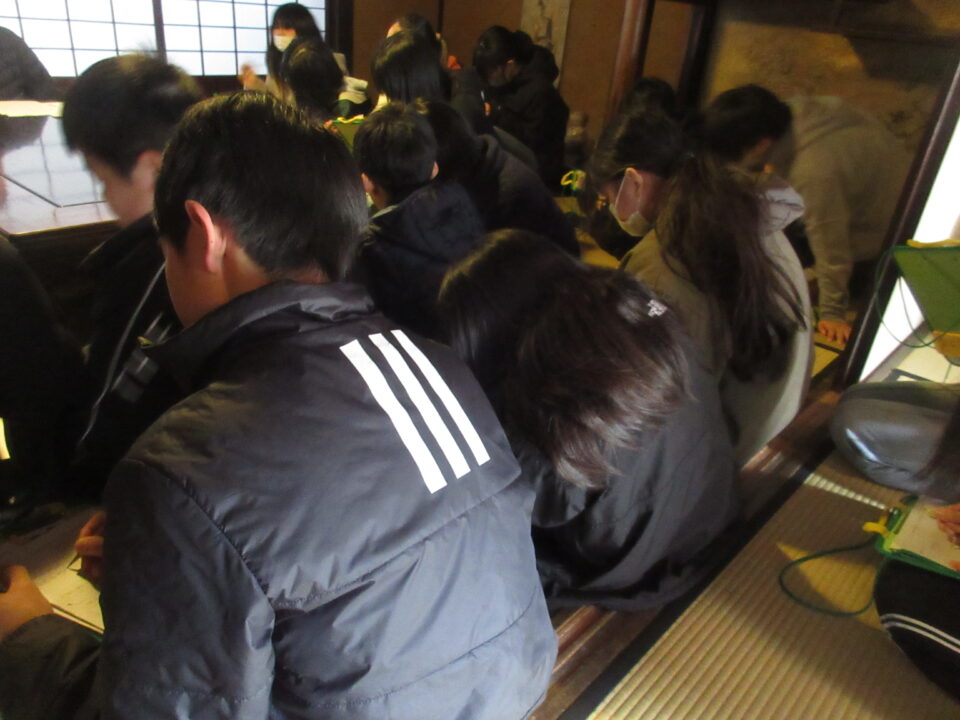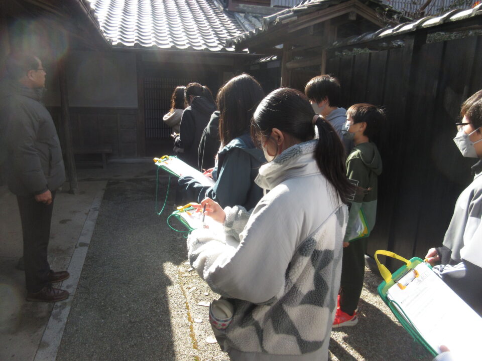今日は6年生が竹川家と国分家を訪問させていただきました。両家とも学校からは近いところにあるので、歩いていきました。射和地区の代表的な両家について事前学習もしながら訪問させていただきました。両家とも中に入らさせていただき、案内もしていただきました。また、事前に出していた質問にも丁寧に答えていただきました。こういう機会はなかなかないので、6年生もいい勉強になったのではないかと思います。