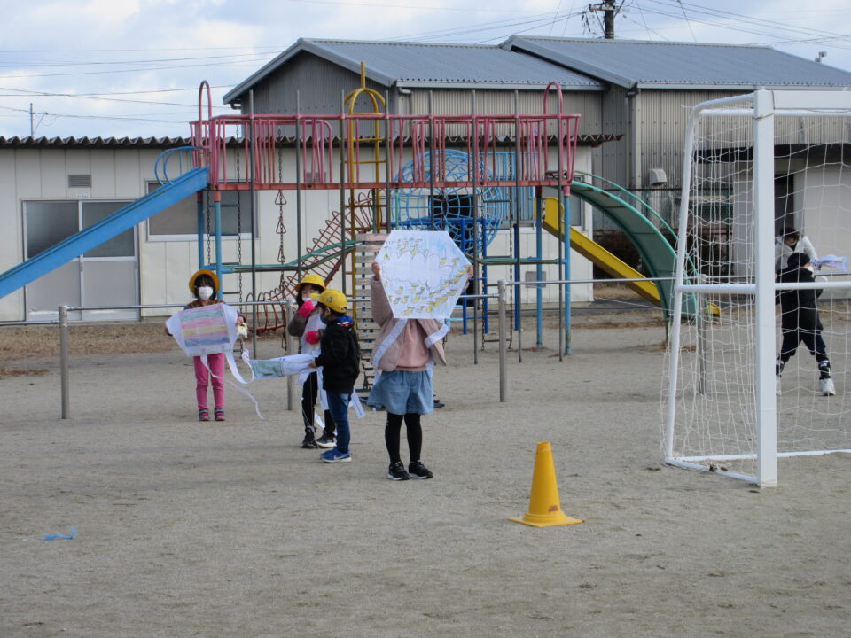 ホーム > 日々の活動の様子 1年生 凧あげ 1年生が運動場で凧あげをしました。凧は好きな絵を書いて自分で作ったものです。 子どもたちは、空高く上がることを願いながら、運動場を駆け抜けていました。 今日からは給食が始まりました。1~3年生の様子です。今年も黙食でのスタートです。 シェアする Twitter でシェア はてなブックマークに保存 LINE でシェア Facebook でシェア Pocket に保存 Feedly で購読 関連投稿 日々の活動の様子 学校が再開しました! 日々の活動の様子 ふれあい訪問 日々の活動の様子 射和幼稚園との交流 1年生 日々の活動の様子 社会見学 5年生 日々の活動の様子 冬休み前集会 日々の活動の様子 赤い羽根共同募金 前の投稿 2022年 射和小学校スタート 次の投稿 社会の授業 6年生