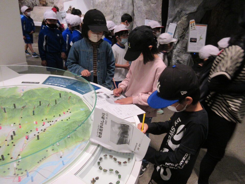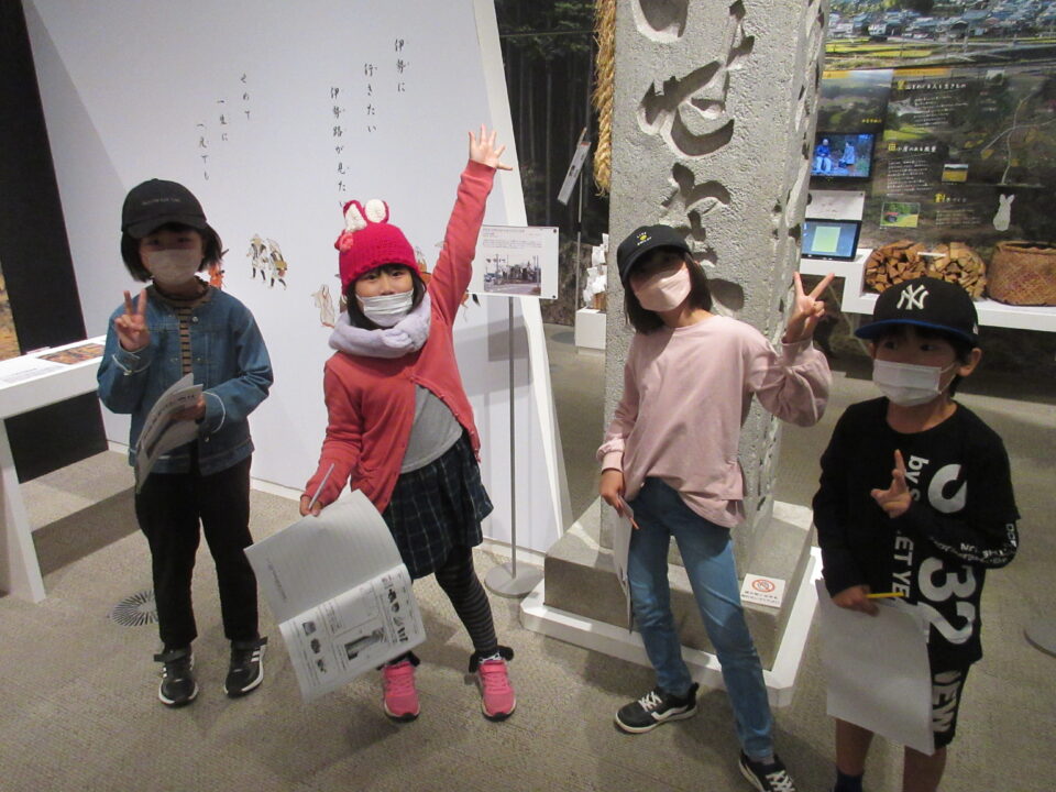 今日は、2年生が社会見学に出かけました。三重県立博物館(ミエム)での様子です。しおりにあるワークシートのなぞ解きにどの班も団結して取り組みました。