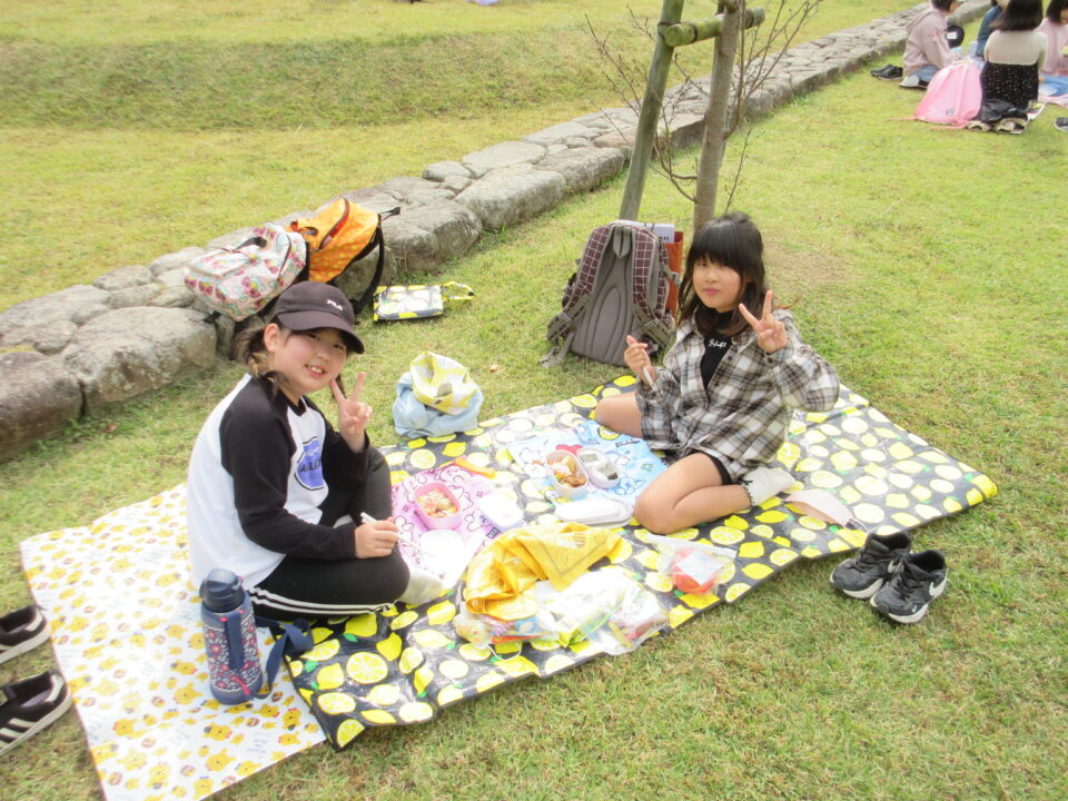 ミエムの庭で、楽しいお弁当タイムです。