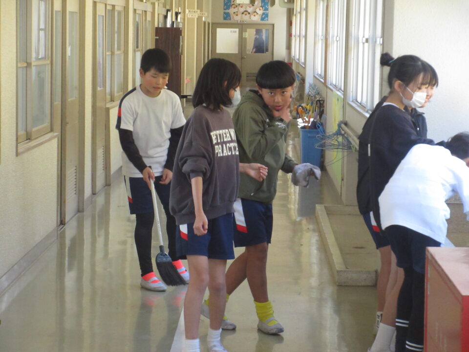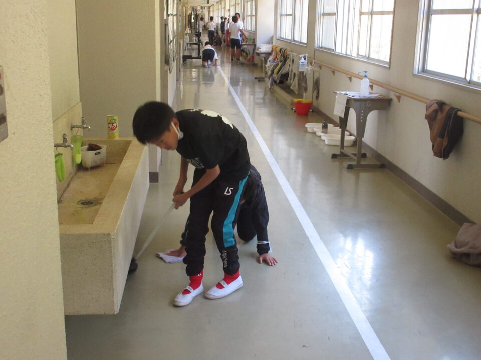 そうじの時間の様子です。普段の掃除場所とは違うのですが、掃き、拭きともがんばっていました。