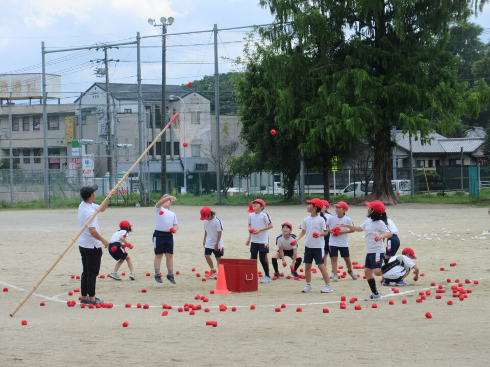 3年生。今日も楽しい体育の時間です。ミニ運動会のような盛り上がりですね。
