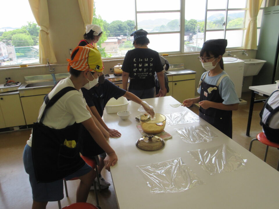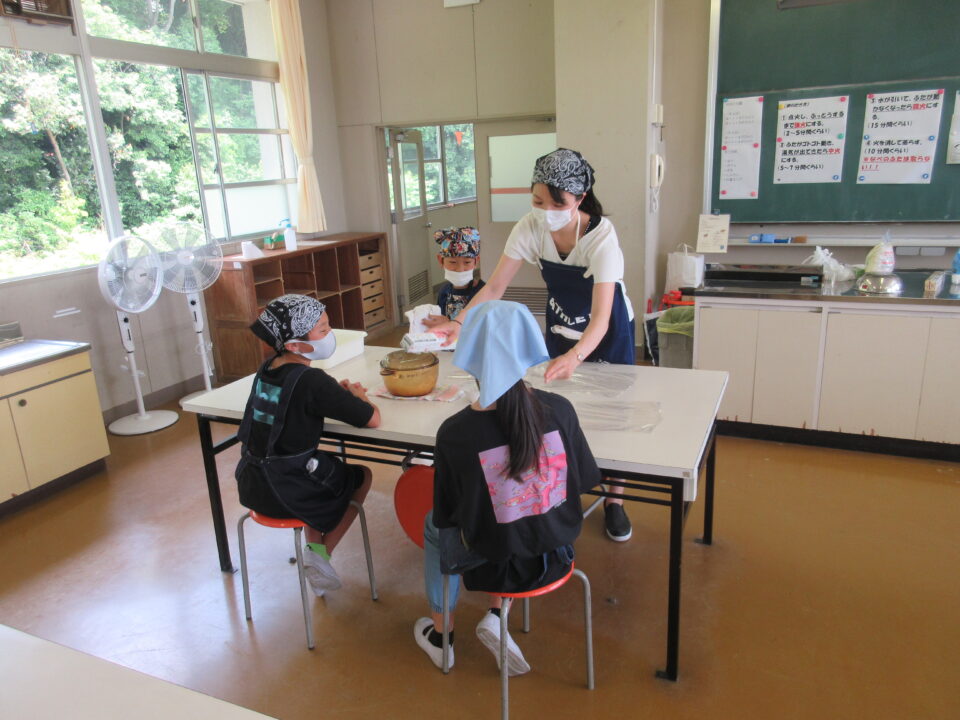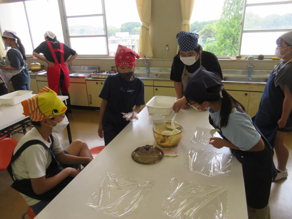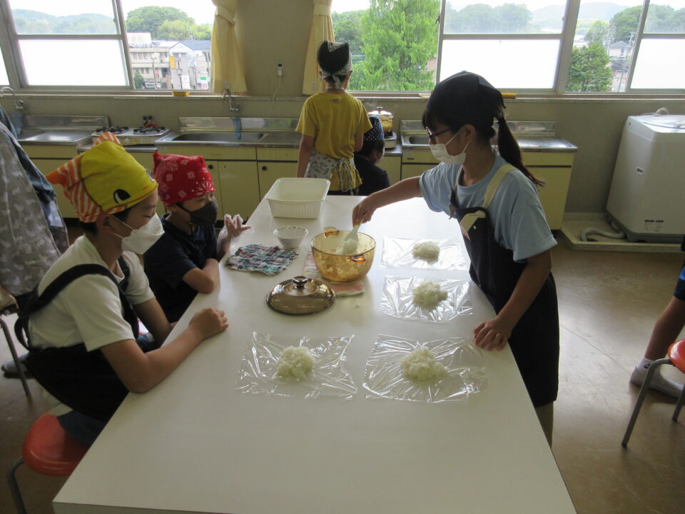 5年生。久しぶりに調理実習を行いました。ご飯を炊いて、おにぎりを作ります。