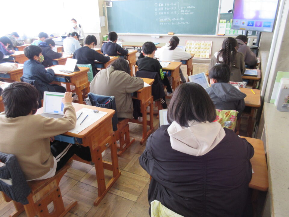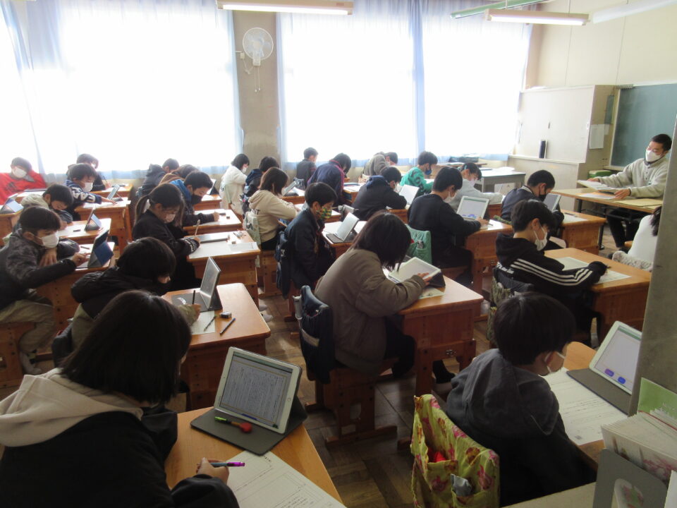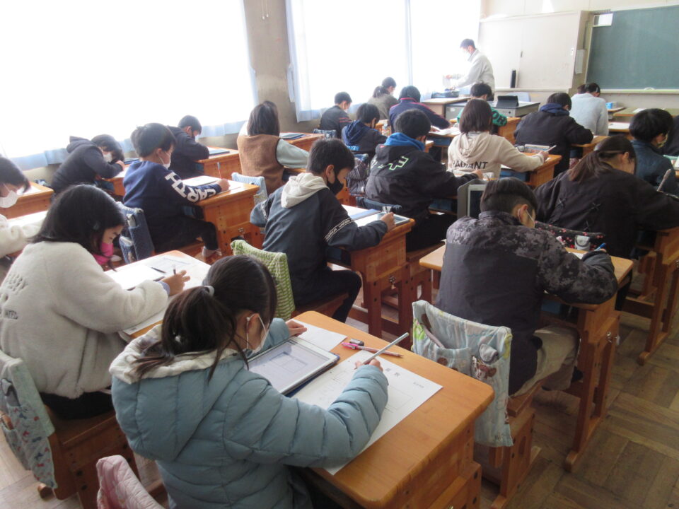 選択式はタブレット端末で、記述式は紙の解答用紙にというやり方です。子どもたちは慣れないテスト方式に少しとまどっていましたが、とても頑張っていました。