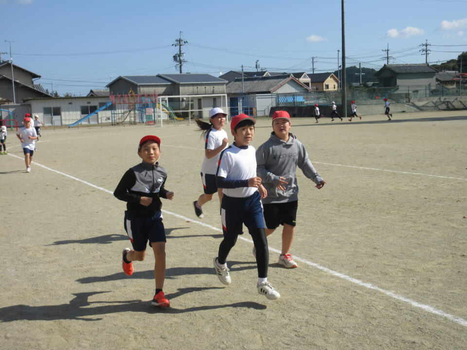 当日に向けて、これから少しずつ体力づくりを行っていきます。今日は5年生が自分のペースで5分完走を行いました。