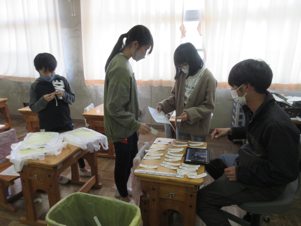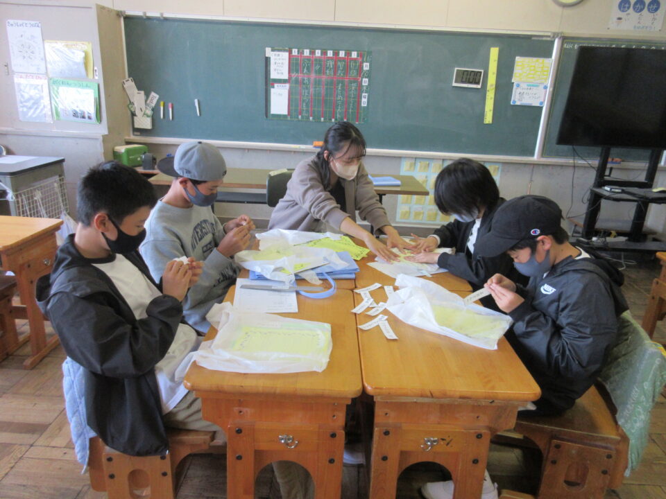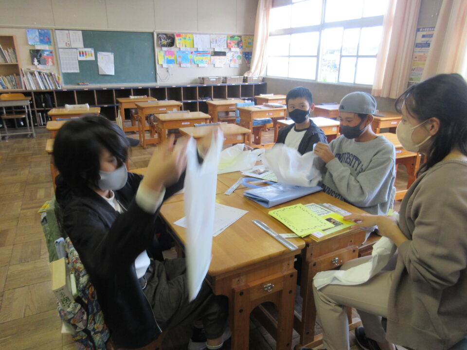5・6年生が、明後日に予定している「ふれあい訪問」の準備を行いました。訪問をさせていただく方々へ贈るプレゼントを袋詰めします。これまで準備をしてきた寄せ書きの色紙等を心を込めて贈ります。