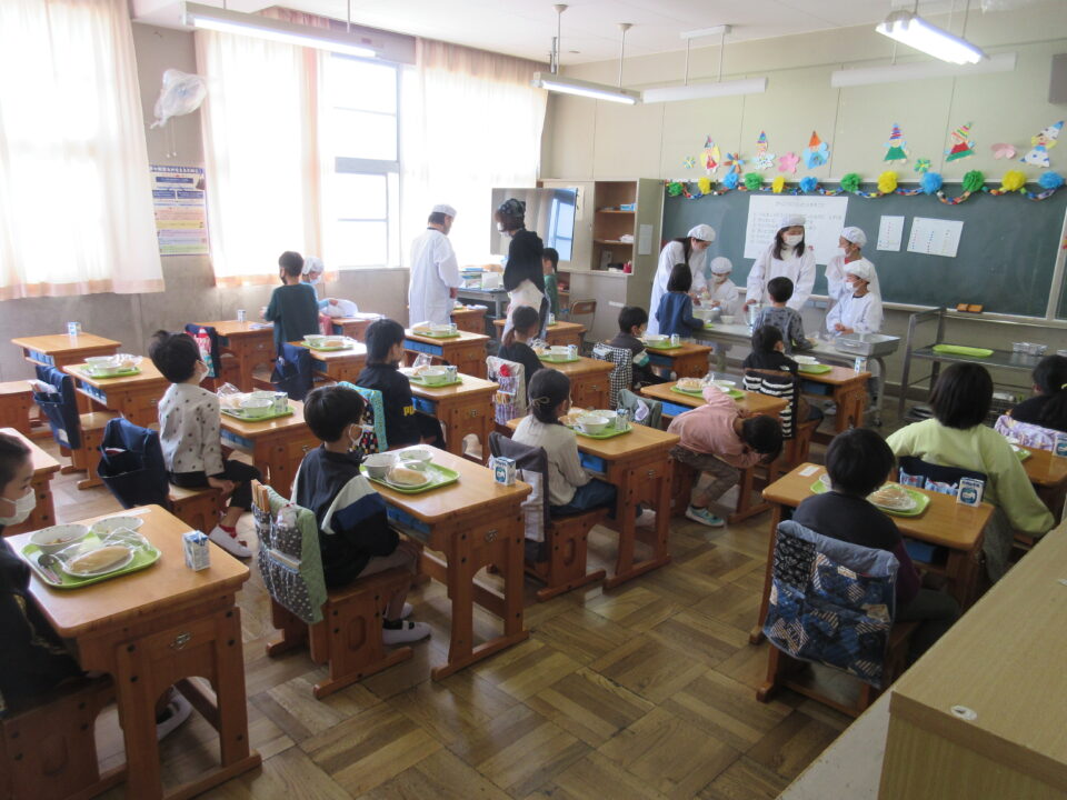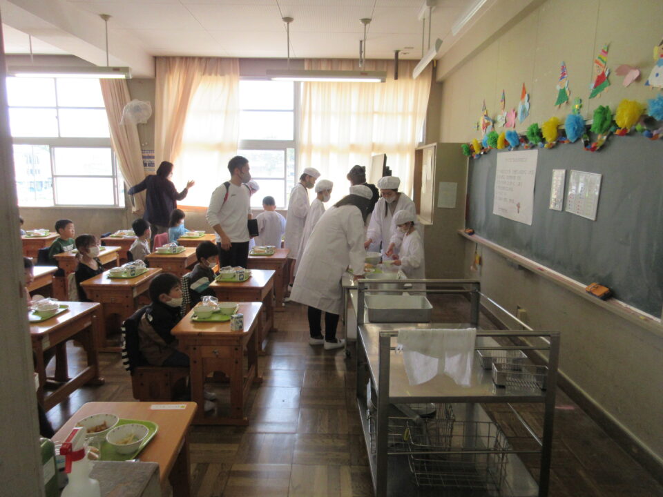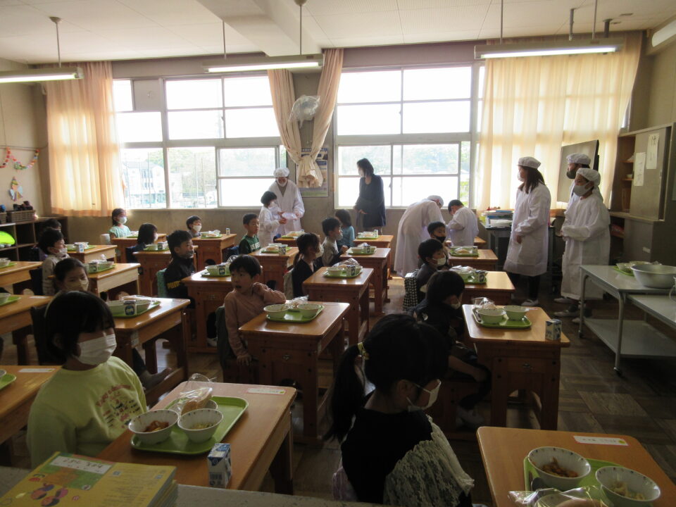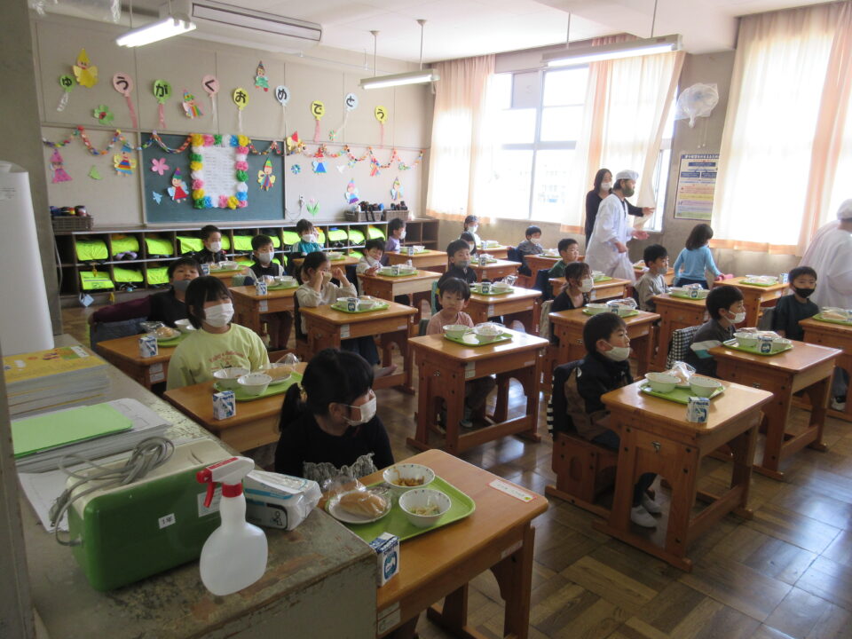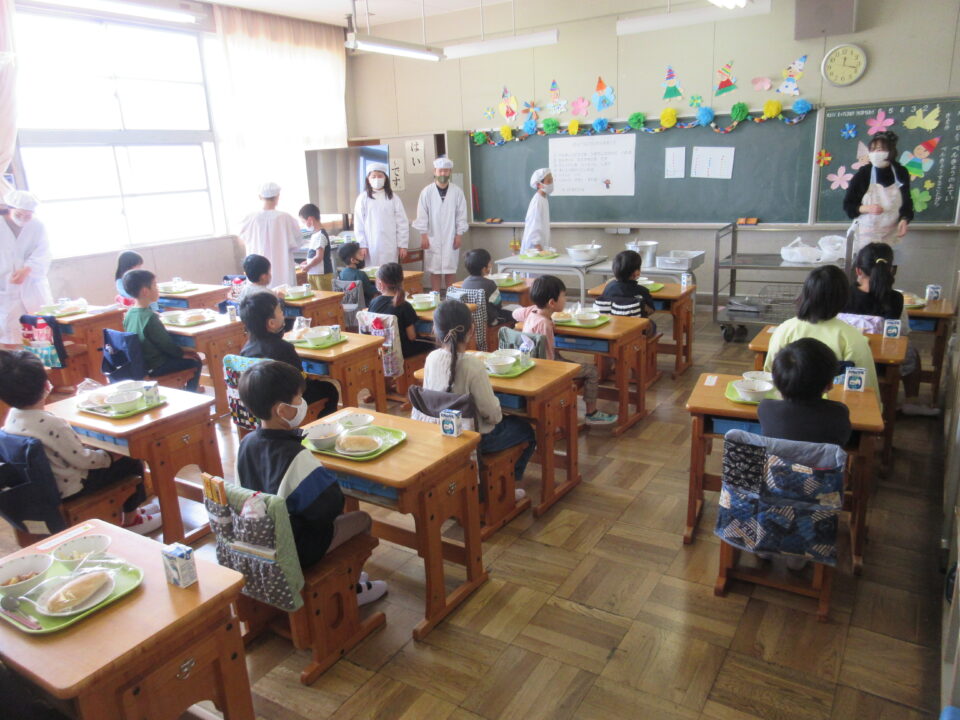 ホーム > 日々の活動の様子 今日から給食が始まりました! 給食と聞くと、つい、にこにこといい顔になりますね。1年生の様子を見に行きました。 6年生が準備を手伝ってくれました! 残さず、おいしくいただきました。 シェアする Twitter でシェア はてなブックマークに保存 LINE でシェア Facebook でシェア Pocket に保存 Feedly で購読 関連投稿 日々の活動の様子 楽しい夕食の時間 日々の活動の様子 文化祭リハーサル 日々の活動の様子 ネットトラブル防止教室 6年生 日々の活動の様子 習字 5年2組 日々の活動の様子 授業の様子 1月21日 日々の活動の様子 グローブが届きました! 前の投稿 各学年の様子 次の投稿 休み時間の様子