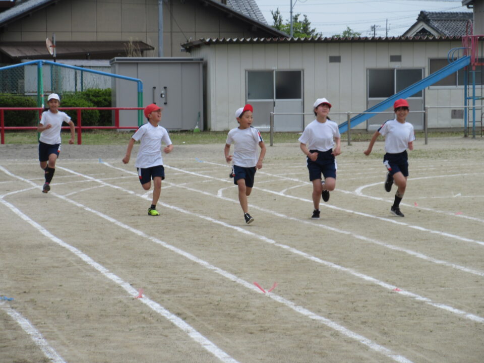 5・6年生。100mに挑戦です。最終組では、先生も快走です。