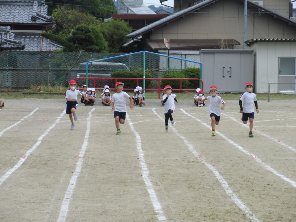 今日は、どの学年もかけっこの練習です。運動場には、ピストルの音がずっと響いていました。