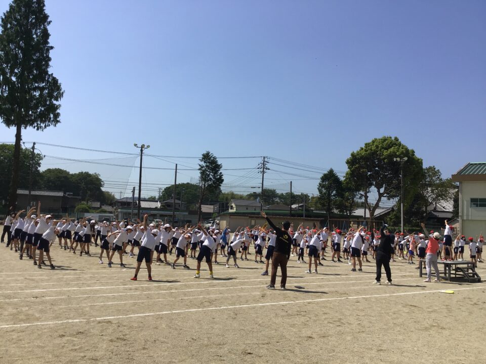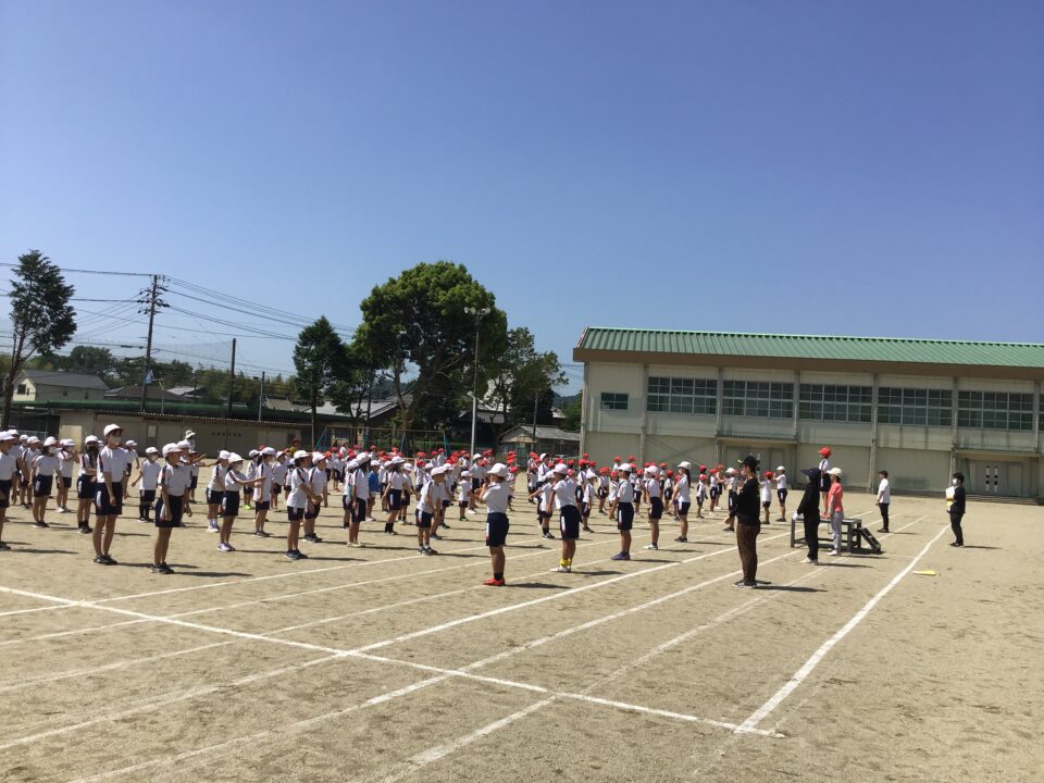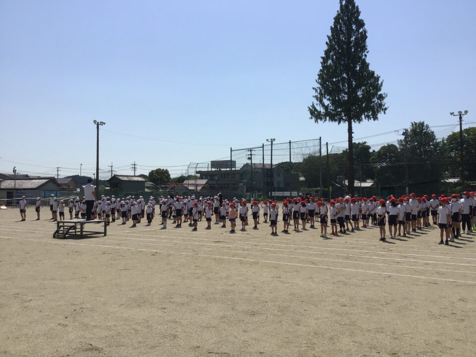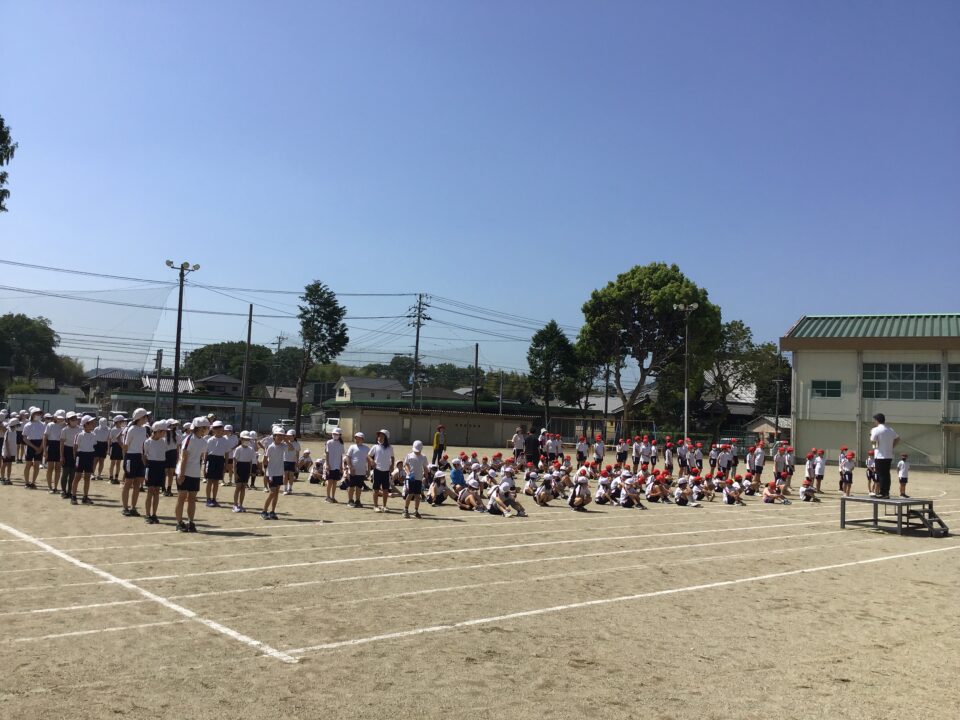 とても良い天気になりました。暑いぐらいです。今日ははじめて運動会の全校練習をしました。全校がそろうと、いよいよ運動会という感じが出てきますね。緊張した顔も見えます。
