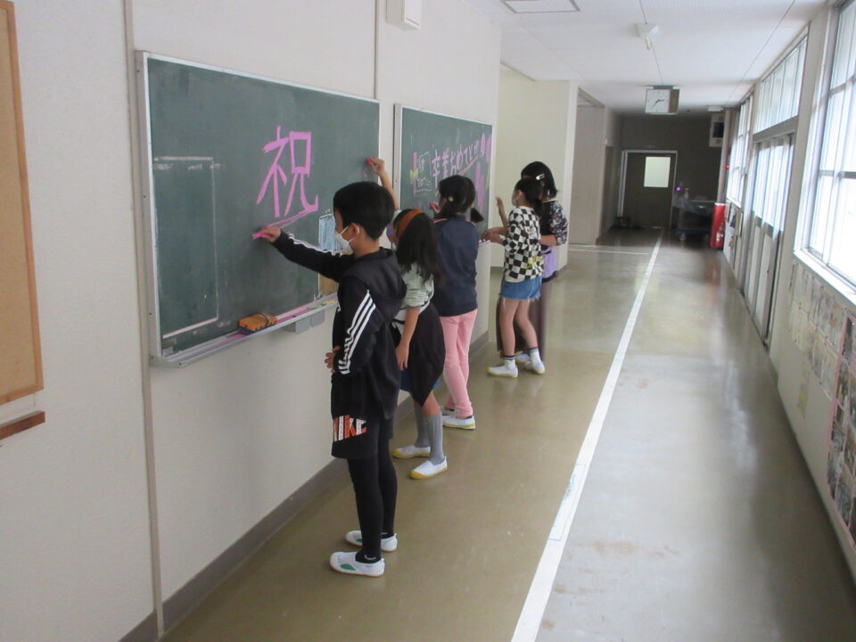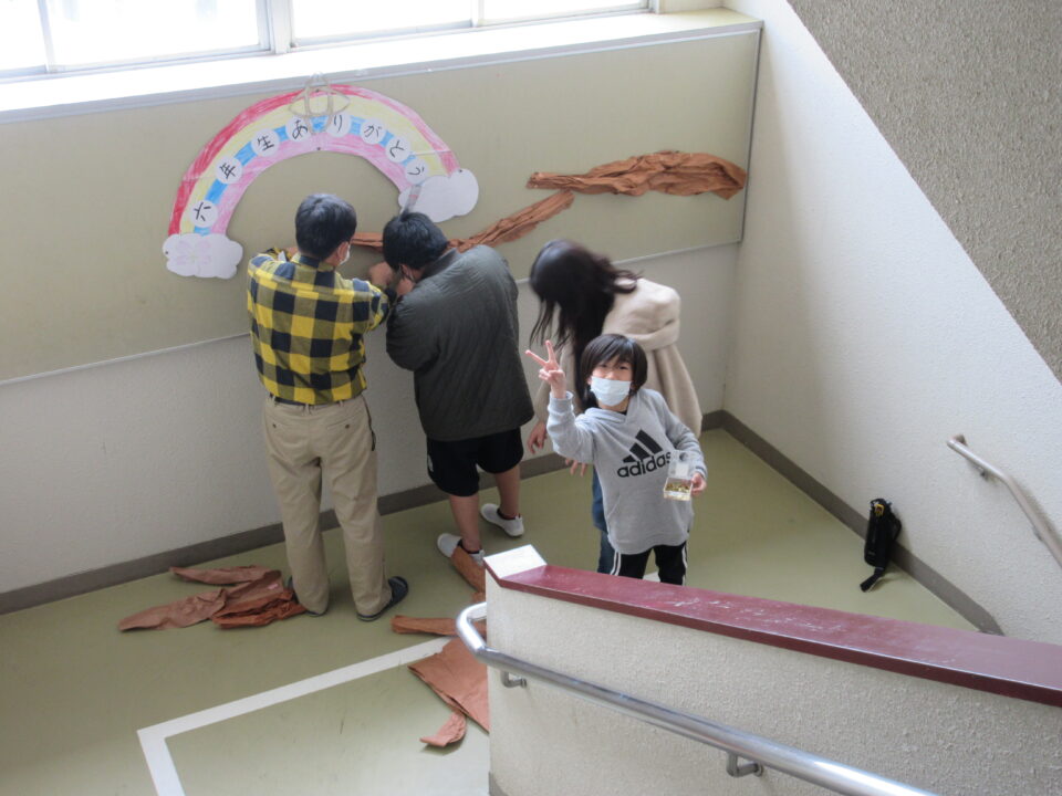 午後からは、4・5年生が卒業式の準備をしてくれました。明日の卒業式を迎えるにあたり、今日の準備はもちろんですが、ここ1か月近く、送る会や卒業式の練習での4・5年生の頑張りはとても素敵でした。おかげで、舞台は整いました。明日の卒業式を待つだけです。きっと素敵な日になると思います。そして、私たち職員にとっても、明日は特別な日です。