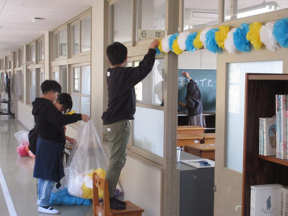 ホーム > 日々の活動の様子 卒業式準備 今日は午後から卒業式の準備をしました。4年生と5年生が時間いっぱいがんばってくれました。これで準備は整いました。当日が楽しみです。 シェアする Twitter でシェア はてなブックマークに保存 LINE でシェア Facebook でシェア Pocket に保存 Feedly で購読 関連投稿 日々の活動の様子 文化祭前日準備 日々の活動の様子 学校風景 日々の活動の様子 授業風景 日々の活動の様子 社会見学 1年生 日々の活動の様子 和食の日 日々の活動の様子 外国語活動 ESTの先生と 前の投稿 オリジナルバッグ 1年・3年 次の投稿 学校だより