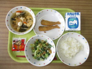 ホーム > 日々の活動の様子 和食の日 今日は2月の「和食の日」です。今日の献立は、ご飯、牛乳、いわしのかりかりフライ、水菜と白菜の福神和え、すまし汁、節分豆です。明日3日の節分に合わせて豆が出ました。よく噛んで、おいしくいただきました。 シェアする Twitter でシェア はてなブックマークに保存 LINE でシェア Facebook でシェア Pocket に保存 Feedly で購読 関連投稿 日々の活動の様子 ちゃちゃもランチ 日々の活動の様子 地域の学習 竹川家訪問 日々の活動の様子 学校風景 日々の活動の様子 学校生活の様子 1月9日 日々の活動の様子 業間かけ足(ラスト) 日々の活動の様子 授業の様子 前の投稿 感謝の気持ちを込めて④ 次の投稿 相可高等学校での調理実習体験 6年生