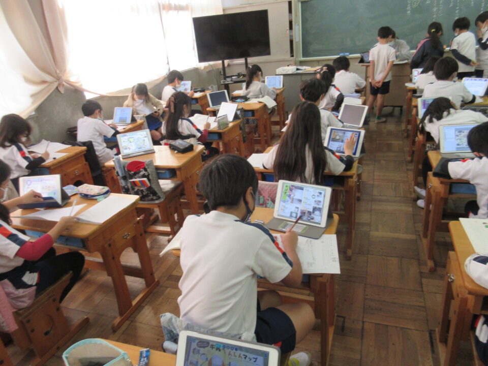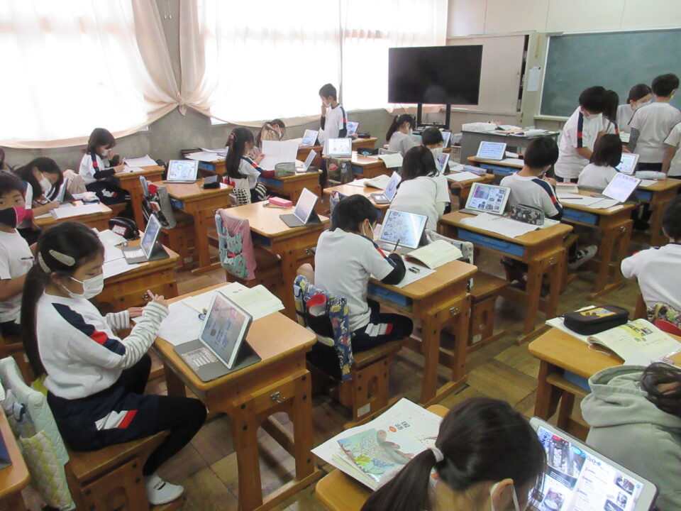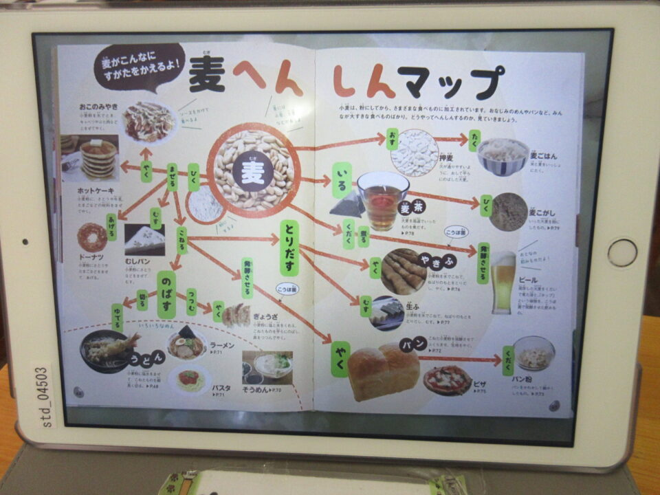 とうもろこし・米・魚・麦などの食材から、どんな食べ物ができるのか、またおいしく食べるためにどんな工夫をしているのか等をみんなに紹介する本を作ります。参考にする資料は、担任から各自のタブレットに送られます。