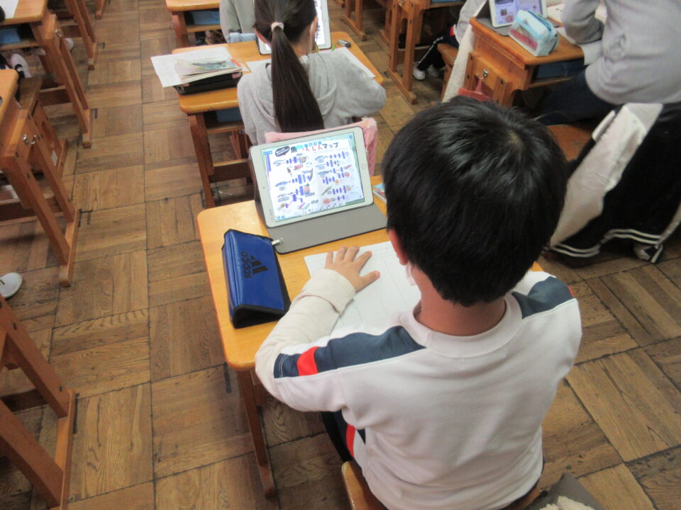 とうもろこし・米・魚・麦などの食材から、どんな食べ物ができるのか、またおいしく食べるためにどんな工夫をしているのか等をみんなに紹介する本を作ります。参考にする資料は、担任から各自のタブレットに送られます。