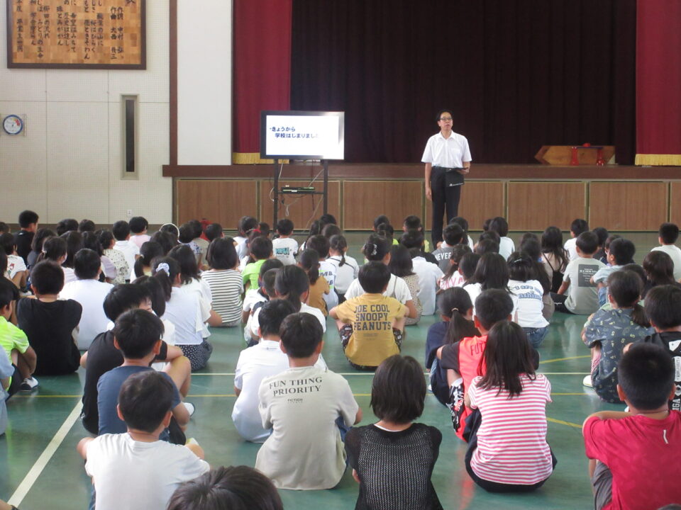 9月1日から9月29日まで教育実習生を1名受けることになりました。全校児童に自己紹介してもらいました。3年生に入っていただきます。