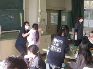 2限目は、4年生が歯みがきについて学んでいました。歯に特別な液を塗ってもらって、みがき残しのチェックです。