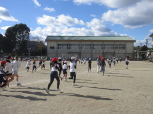 業間には、「業間かけあし」を行いました。まずは準備体操です。