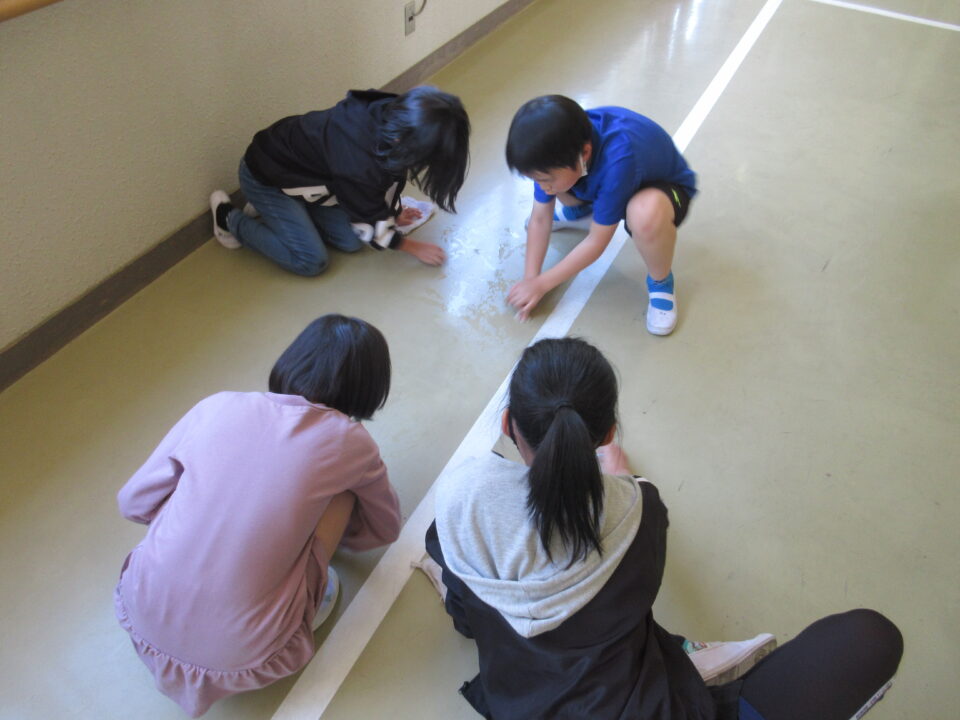 そして掃除の時間…今日も、本校の伝統の雑巾がけに励む子どもたちの姿です。