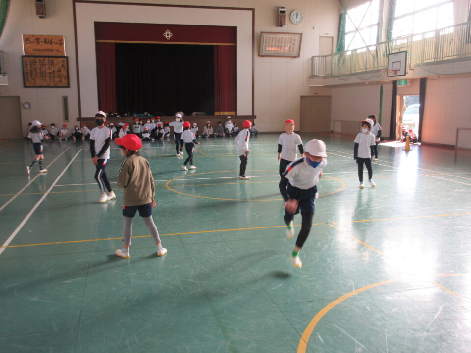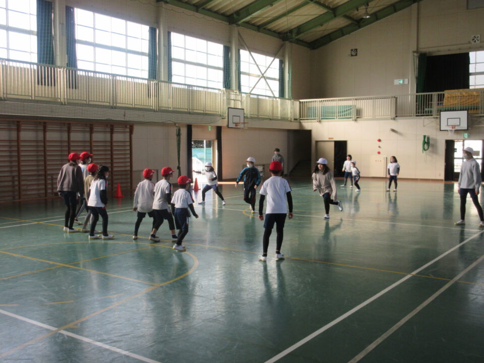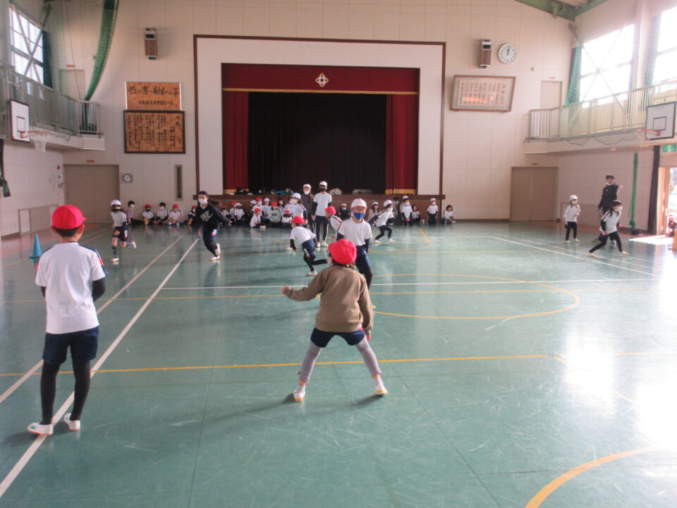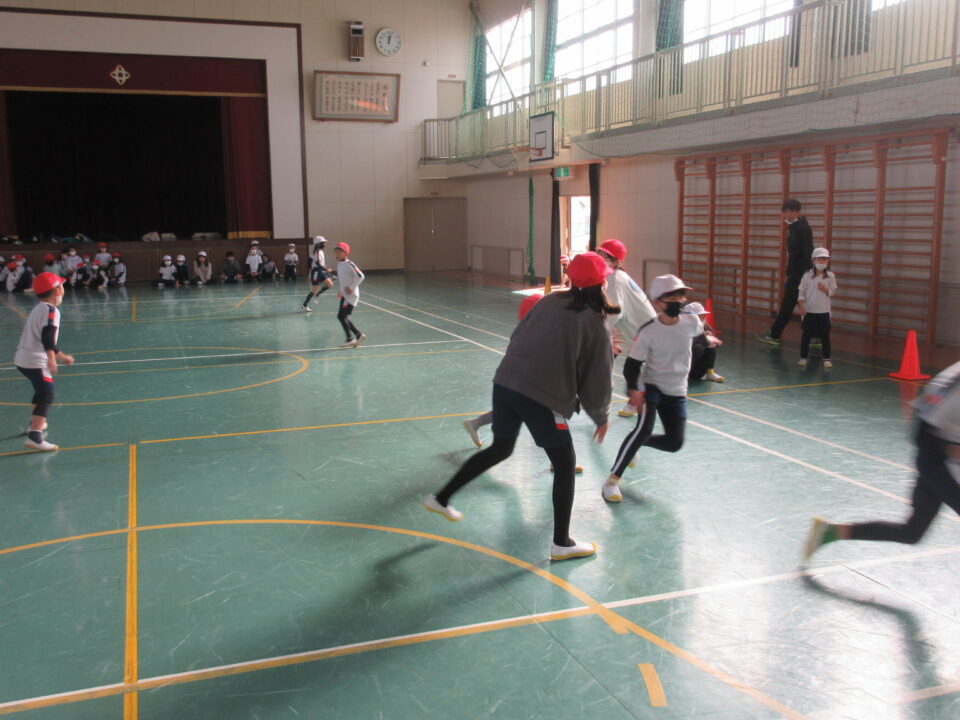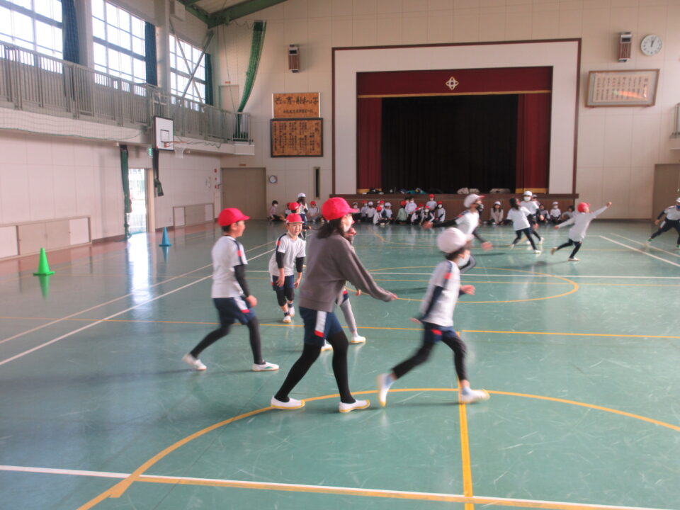 2年生と5年生が合同で体育の学習を行いました。両学年が共に楽しめるゲームです。どの学年が一緒になっても仲良く楽しめることが子どもたちの素敵な所です。5年生は自然とリーダーとしての力も育っていきます。