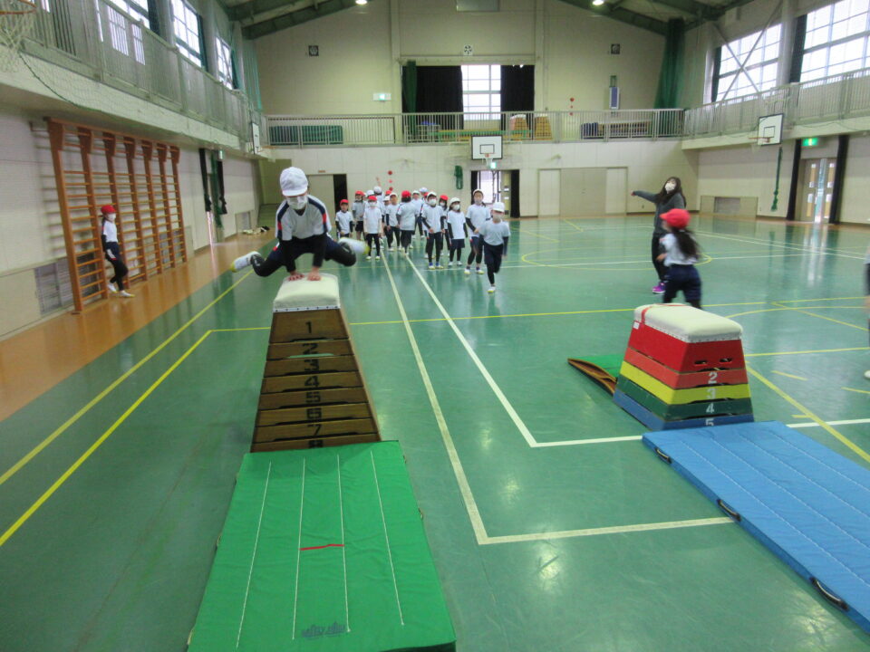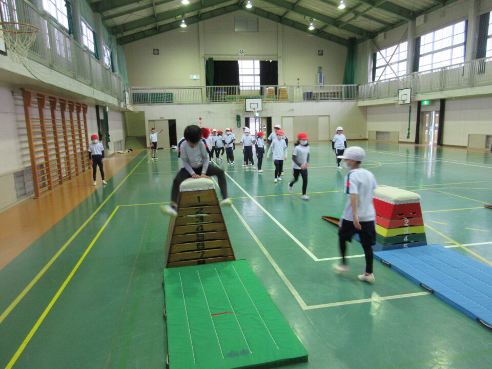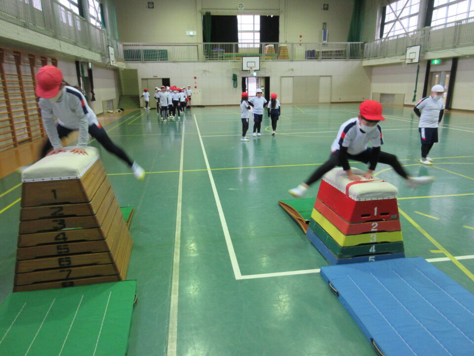 3年生の体育は「跳び箱」です。8・7・5段に挑戦しています。どの子も今の自分のさらに上を目指して何度も挑戦しています。また、8段を跳べた子には自然と大きな拍手が起こります。暖かい雰囲気の中での練習です。子どもたちの意欲がどんどん高まっています。思わず応援をしたくなります。