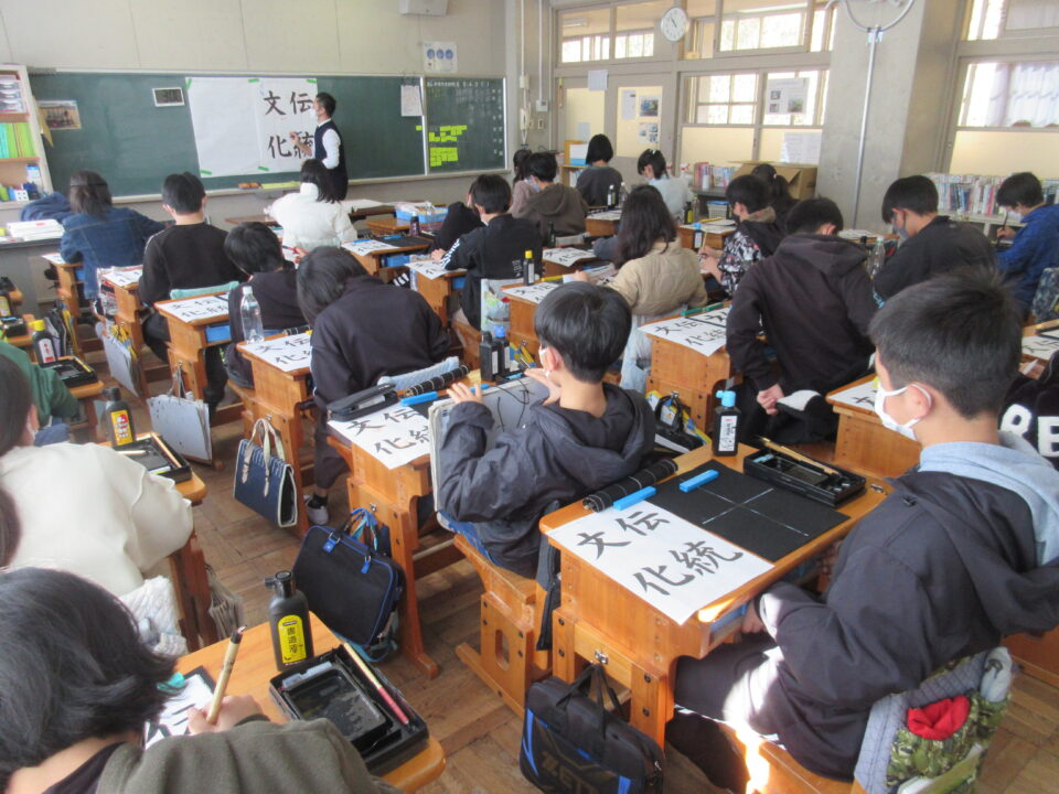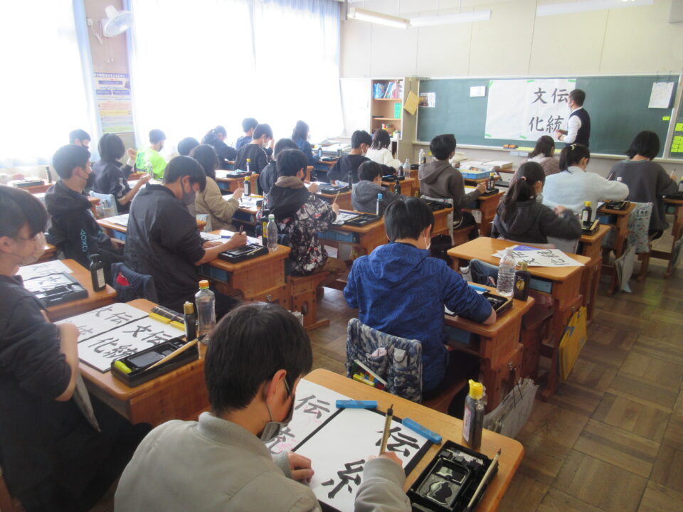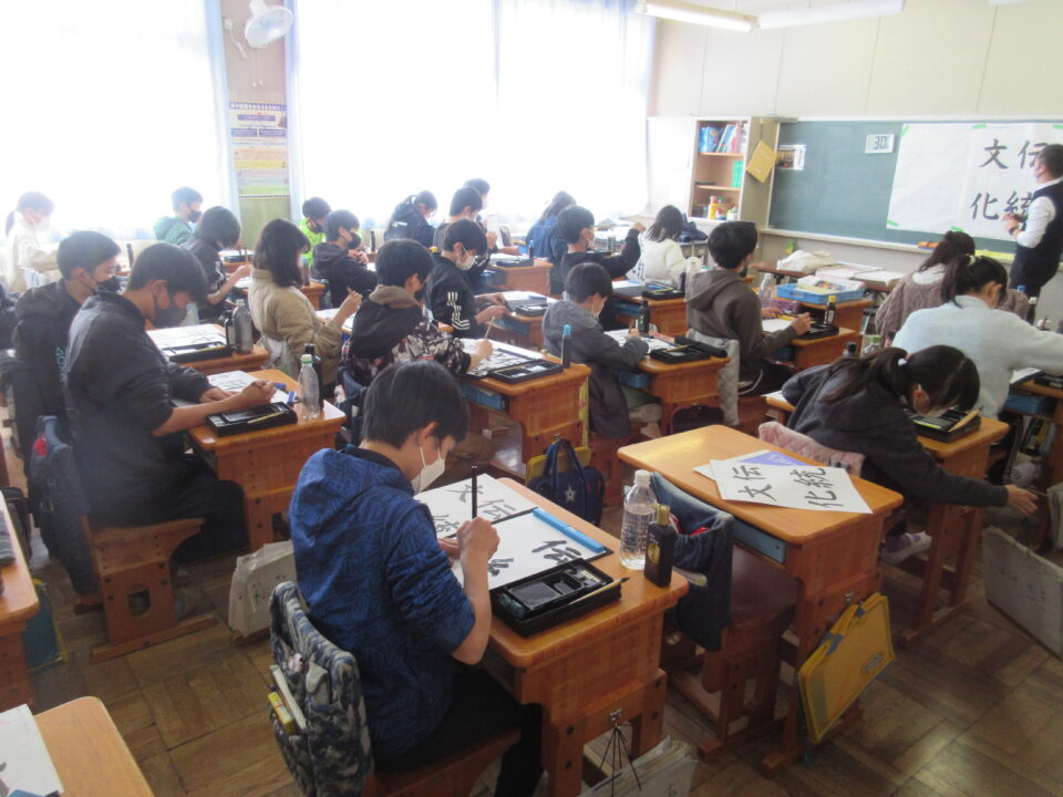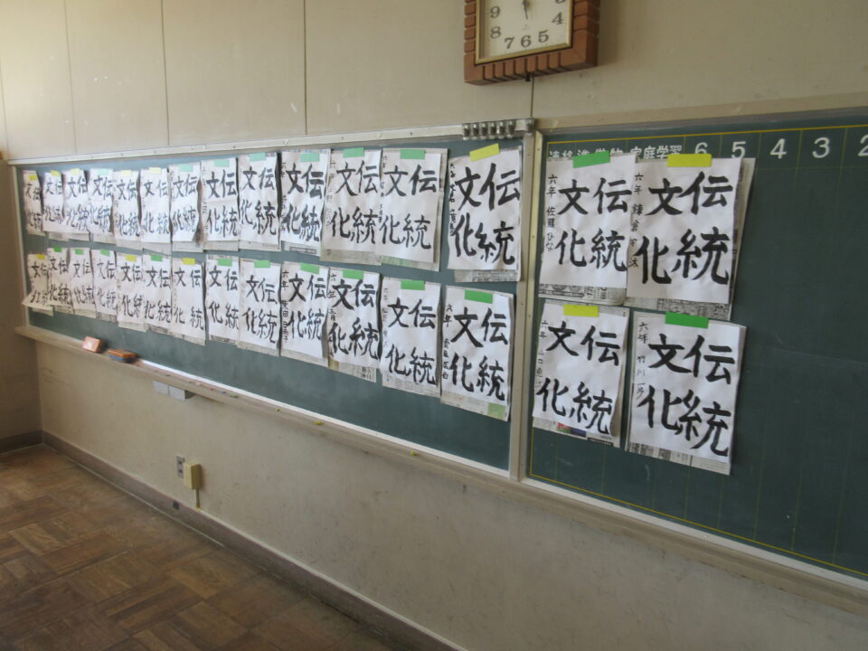 6年生の習字の時間です。課題は「伝統文化」です。さすがは6年生。皆が「集中」して清書している姿がとても素敵です。