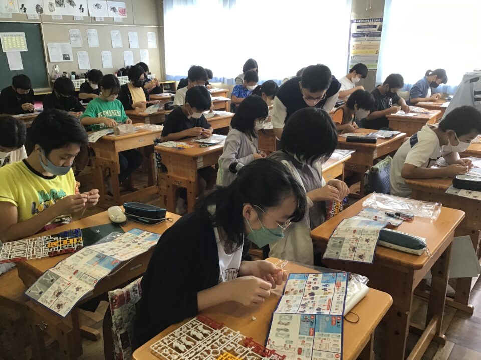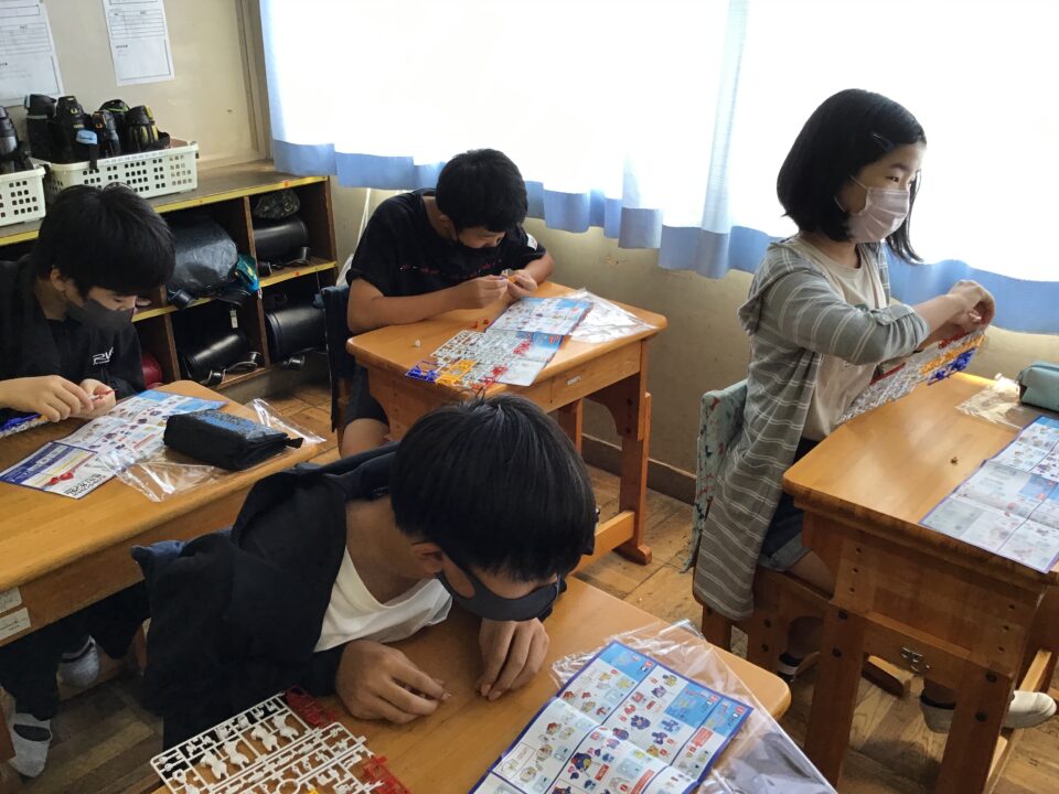 6年生の子どもたちは「ガンダムのプラモデル作り」を楽しみました。すごい集中力です。