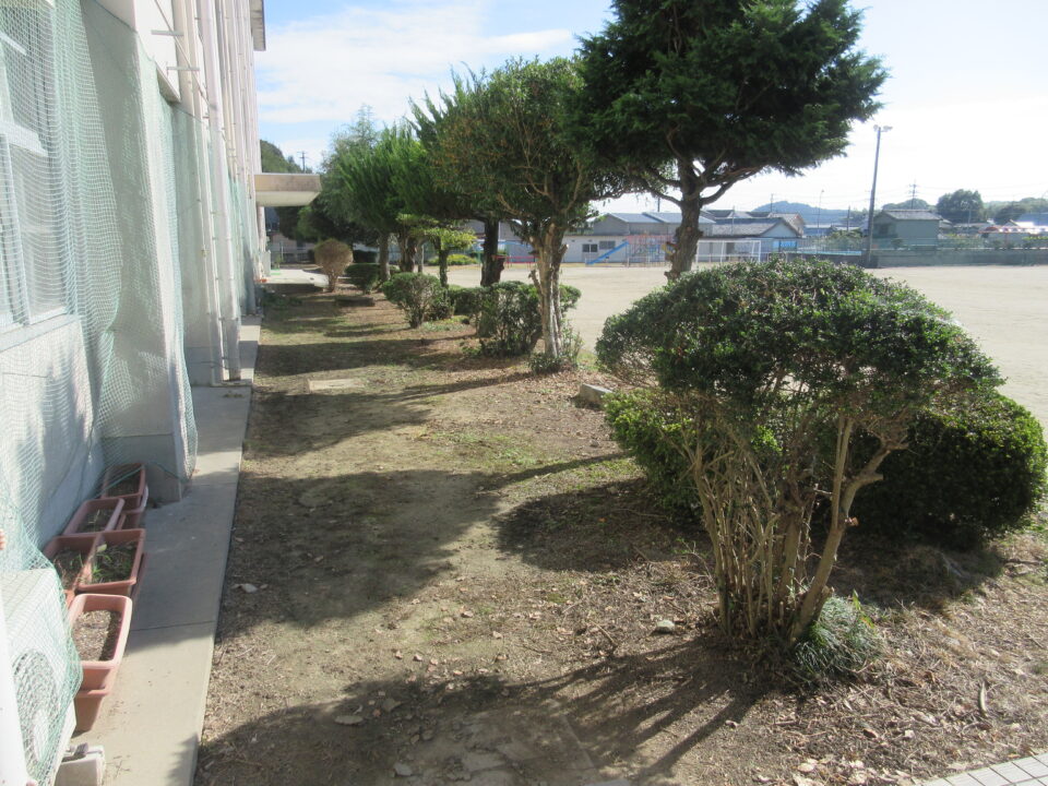 気づかれた方もいると思いますが、学校が綺麗になりました。本校の校務員さんや近隣校の校務員さんがいつも草刈りや樹木剪定等をしていただいています。