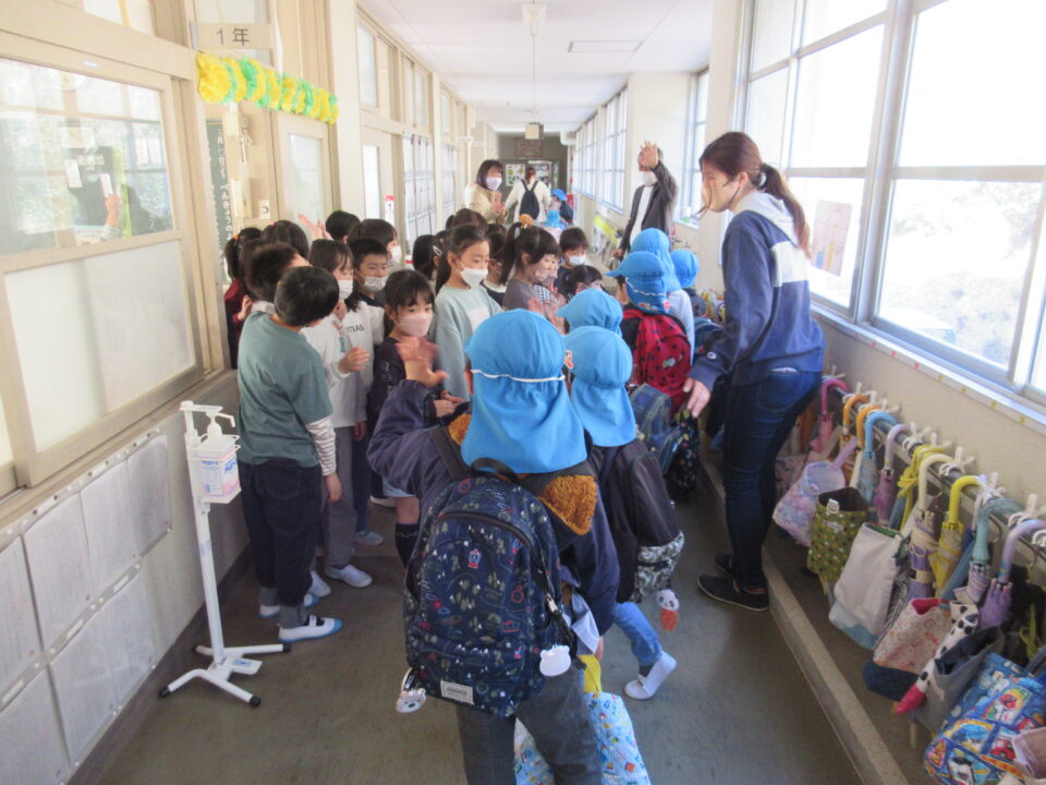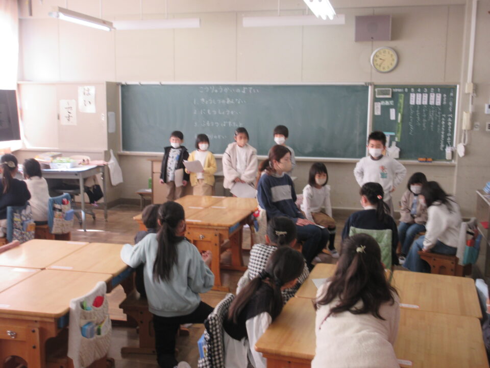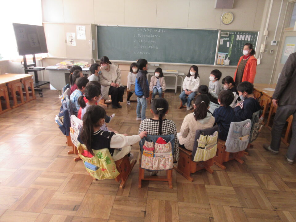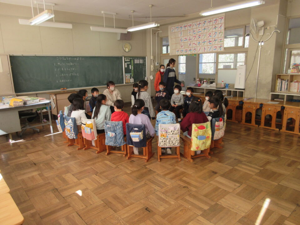 また、2つの教室に分かれて皆でフルーツバスケットを楽しみました。ほんのわずかな時間でしたが、子どもたちとても仲良くなりました。今日は、1年生の皆が何だかとても頼もしく見えました。4月からはお兄さん・お姉さんになります。