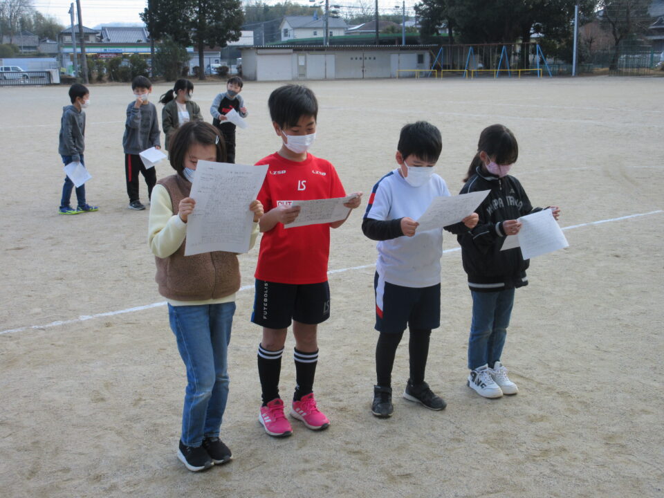 発表の練習は、コロナ対策と自信をもって堂々と発表ができるように運動場で行いました。