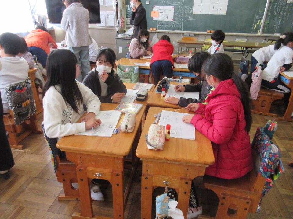 4年生の算数の授業です。図形のまわりの長さを求める授業です。