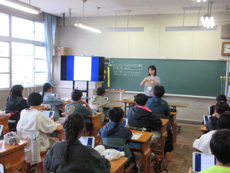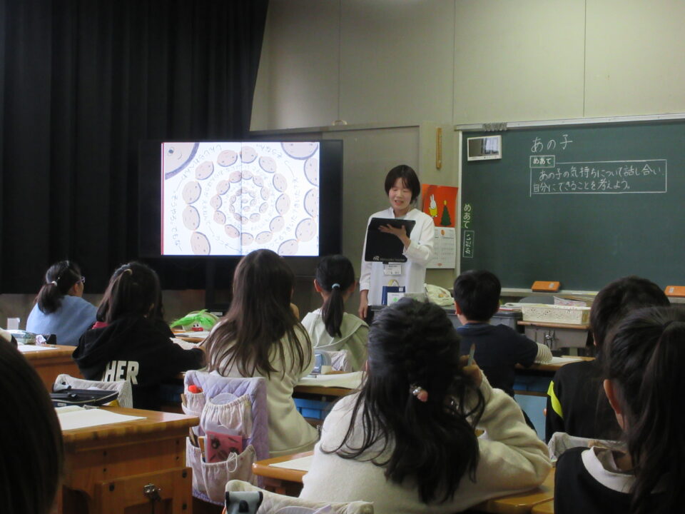 今日は、授業参観と人権講演会を行いました。5限目は、各クラスで人権にかかわる授業を行いました。
