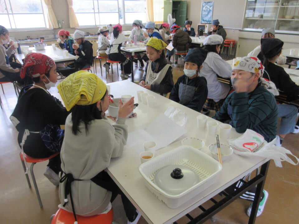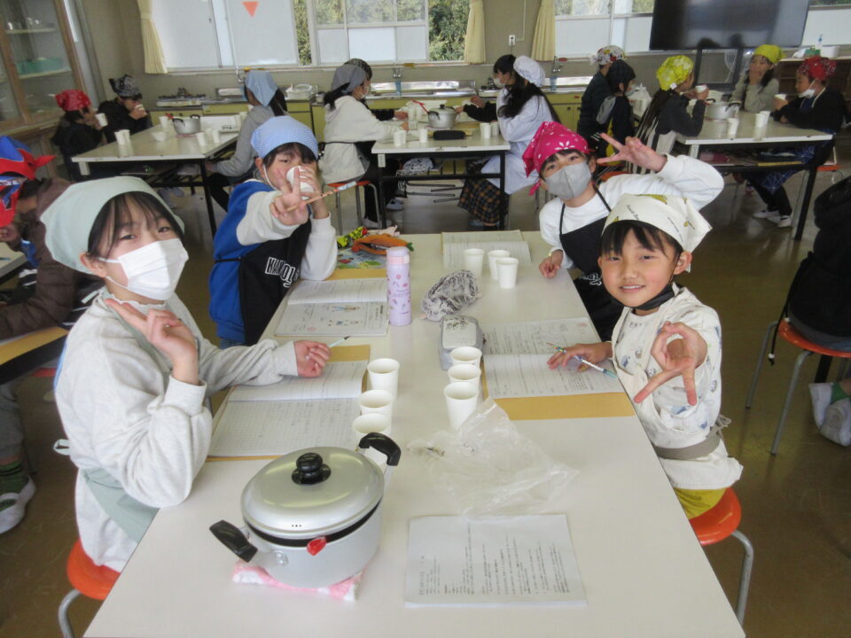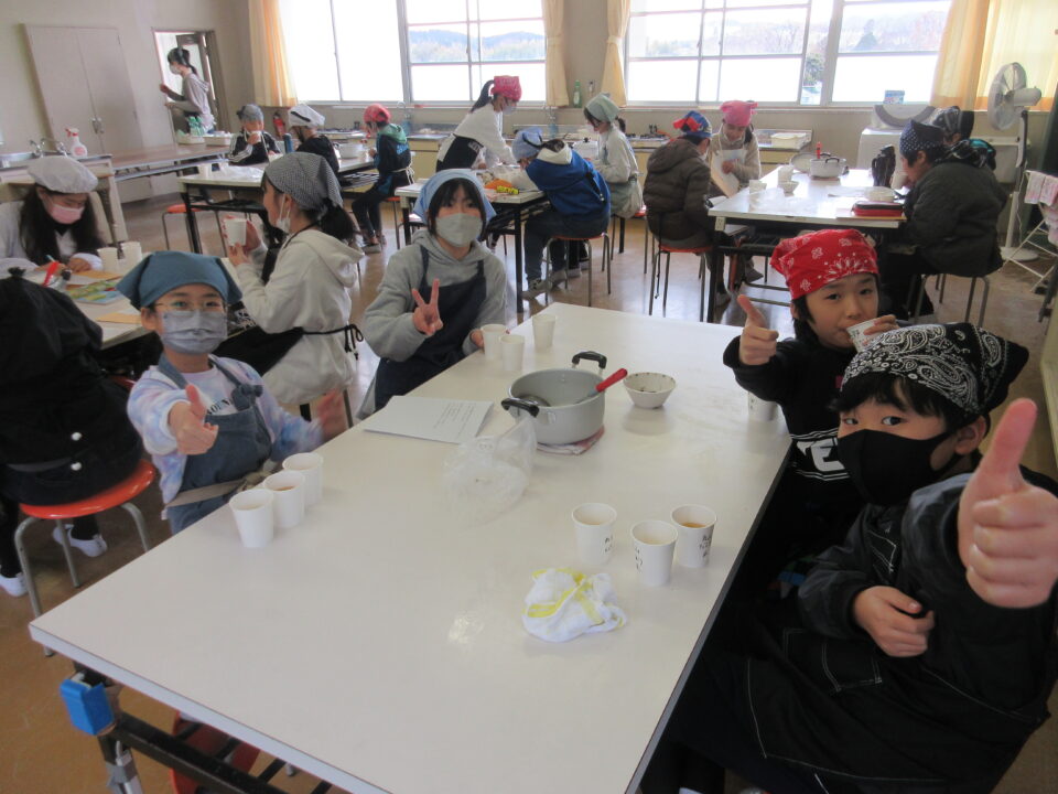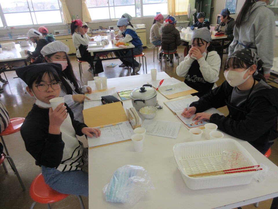 5年生の家庭科の時間です。味噌汁の飲み比べをしています。