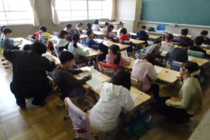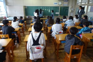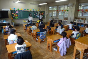 1年生教室には、朝から6年生が来てお手伝いをしてくれています。元気いっぱいのあいさつがとてもよかったです。