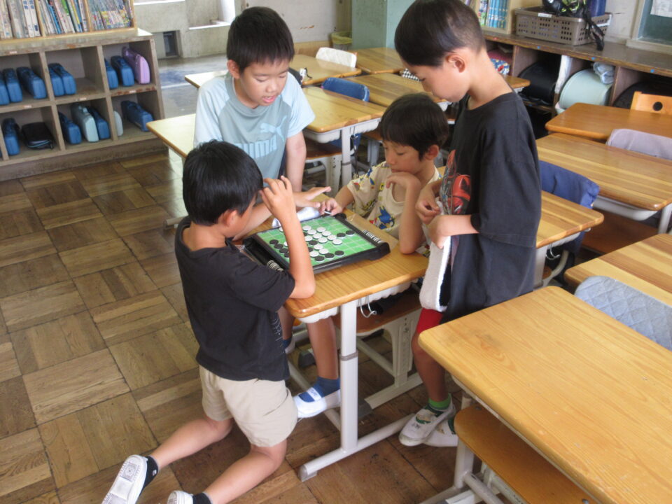 2年生の教室では、先生とオセロで勝負をしていました。どちらが勝ったのかな?