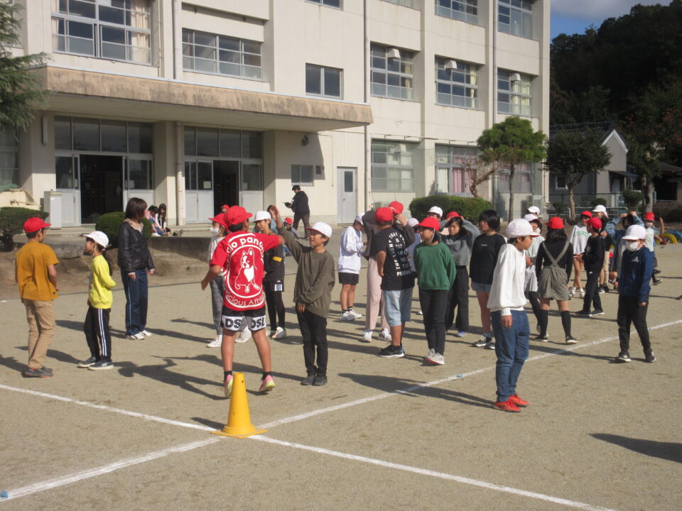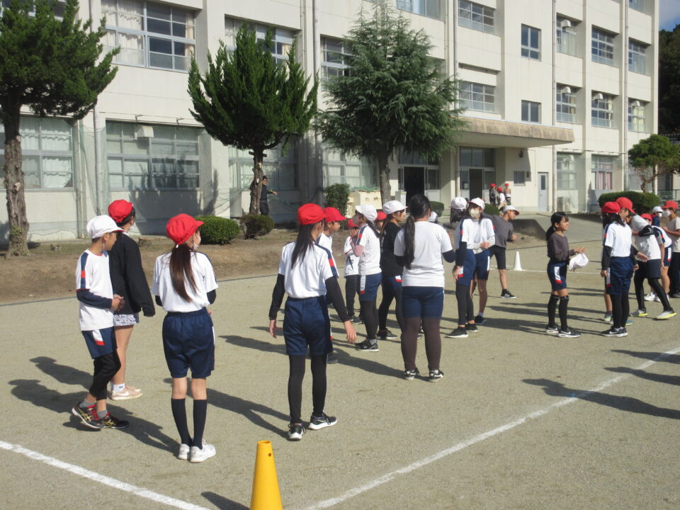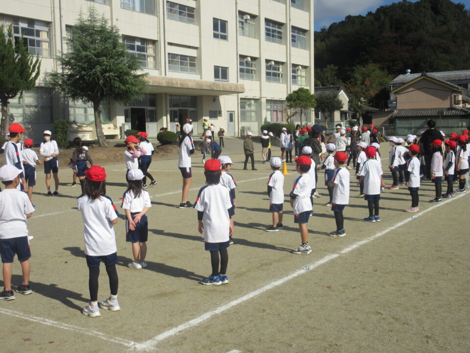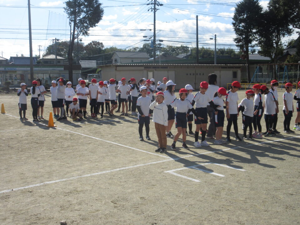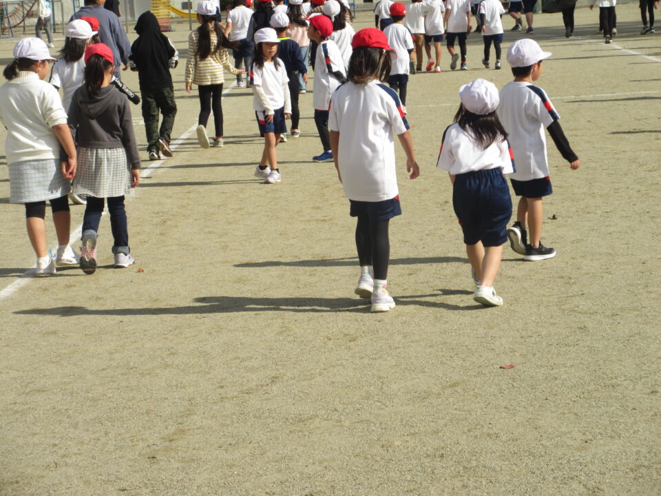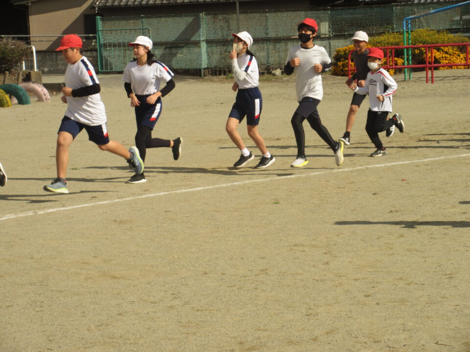 今日から業間かけ足が始まりました。天気も良く走るにはちょうど良い感じです。音楽に合わせて準備運動、かけ足が始まりました。初日にしては、みんなとってもはやく走りだしました。固まって走ると、なかなか迫力もあります。この調子でこれからもがんばりましょう。